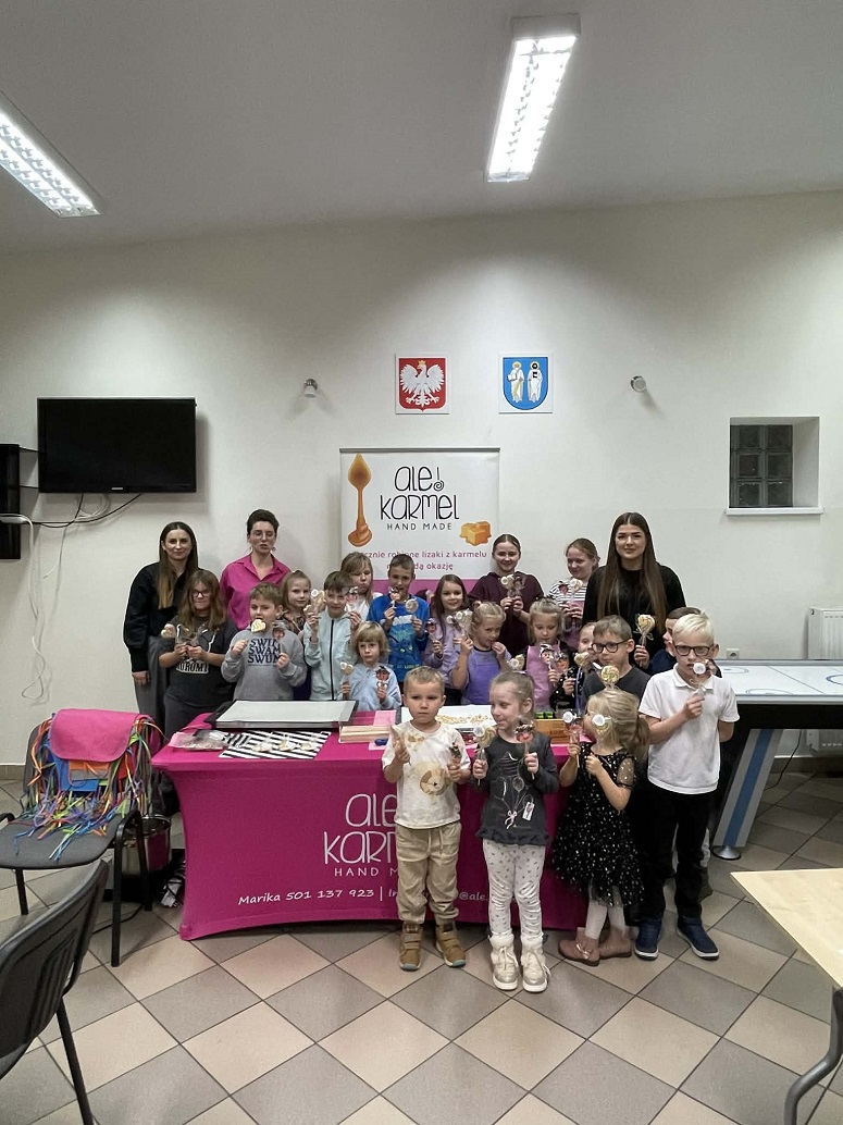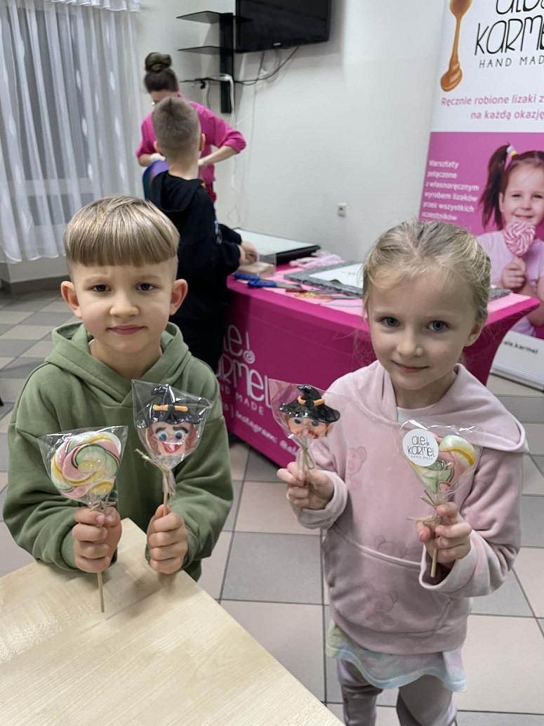 Kolorowe zakręcone lizaki i czarownice, czyli cuda które stworzyli nasi milusińscy zagościły w naszej Bibliotece. Była to świetna kombinacja smaków, kolorów, która wprowadziła dużo radości wśród dzieci. A także świetna zabawa i mile spędzony czas. Pani Marika podzieliła się z nami różnymi ciekawostkami na temat produkcji słodyczy.