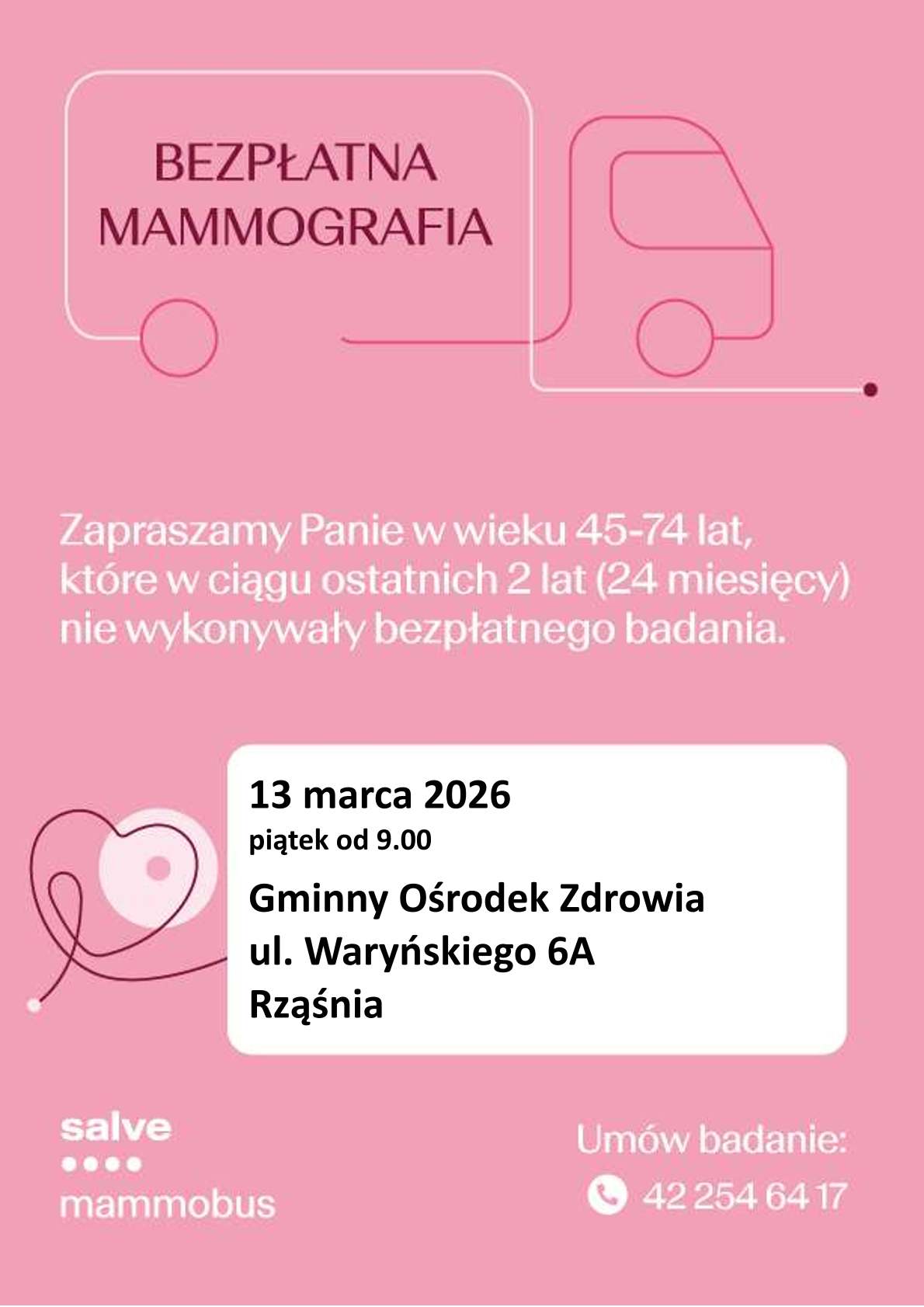 Bezpłatne badania mammograficzne w Rząśni