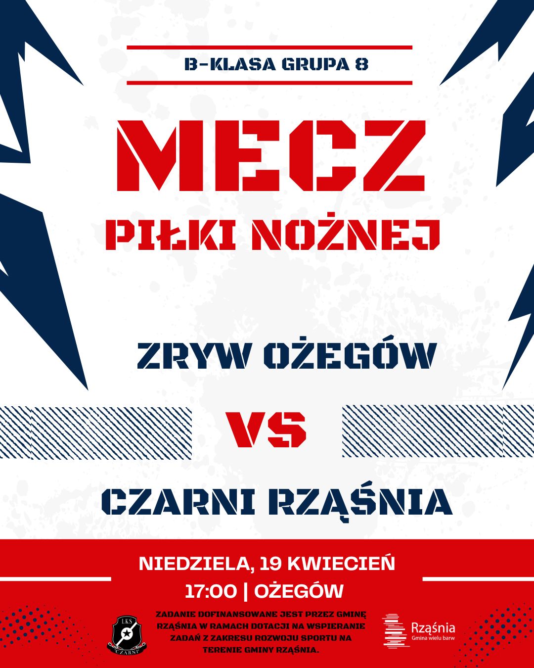 W najbliższą niedzielę w ramach 14 kolejki grupy 8 łódzkiej B-klasy Czarni Rząśnia wybierają się do Ożegowa. Spotkanie z zajmującym przed tą kolejką 6 miejsce Zrywem zostało zaplanowane na godzinę 17:00. Nasza drużyna w swoim ostatnim spotkaniu pewnie zwyciężyła 6:2, co ciekawe też ze Zrywem ale z Wójcina. Rywal tydzień temu natomiast zremisował 1:1 na boisku lidera. Zapowiada się kolejne pełne emocji popołudnie z Czarnymi w roli głównej.