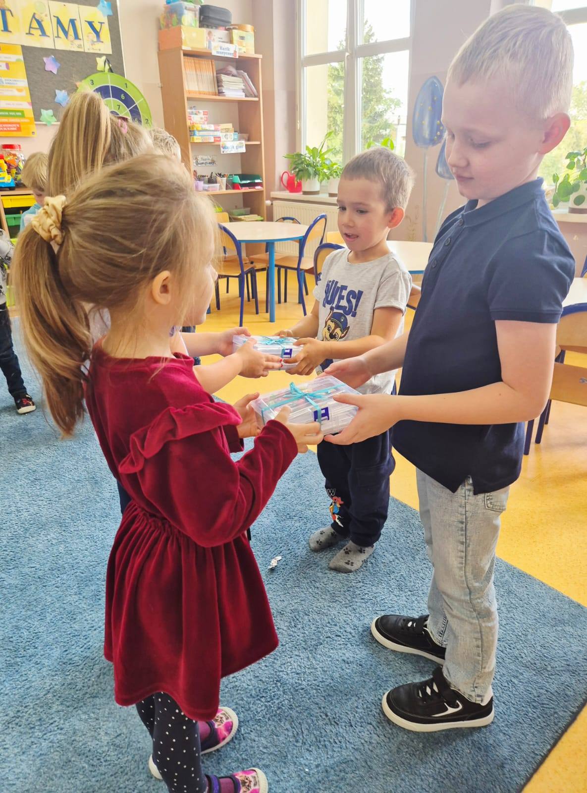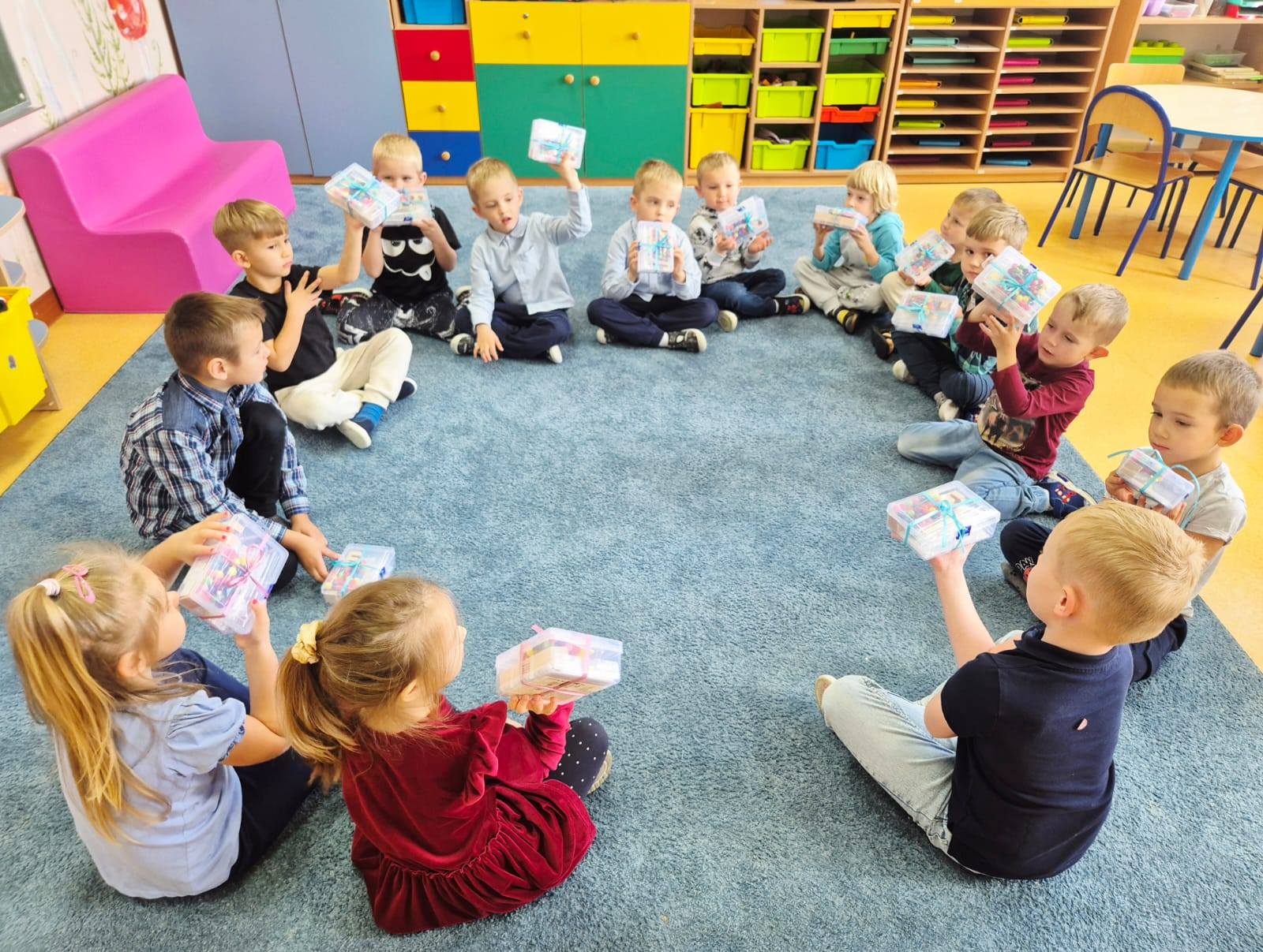 Nasi mali dżentelmeni otrzymali moc uśmiechów, życzeń i drobnych upominków, a dziewczynki przygotowały dla kolegów niespodzianki i piękne życzenia. Cieszymy się, że mogliśmy razem spędzić ten dzień w tak wesołej i serdecznej atmosferze.