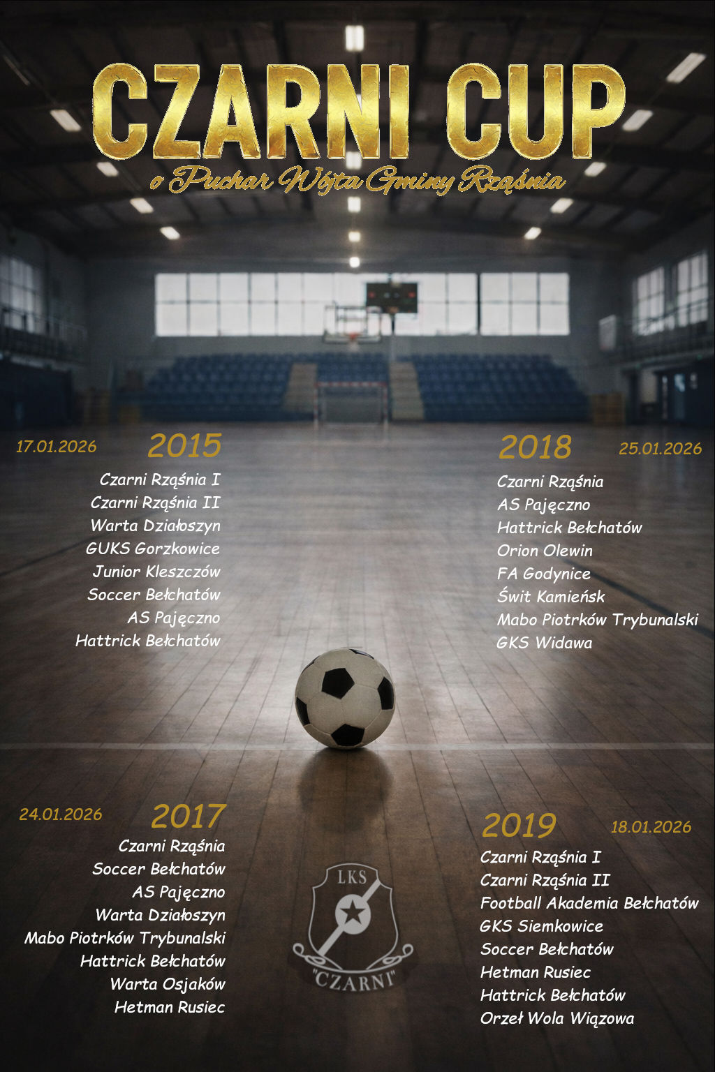Klub Czarni Rząśnia zaprasza na cztery turnieje „Czarni Cup o Puchar Wójta Gminy Rząśnia” rozgrywane na Hali Sportowej przy Szkole Podstawowej w Rząśni w których wystąpią nasi młodzi adepci futbolu.