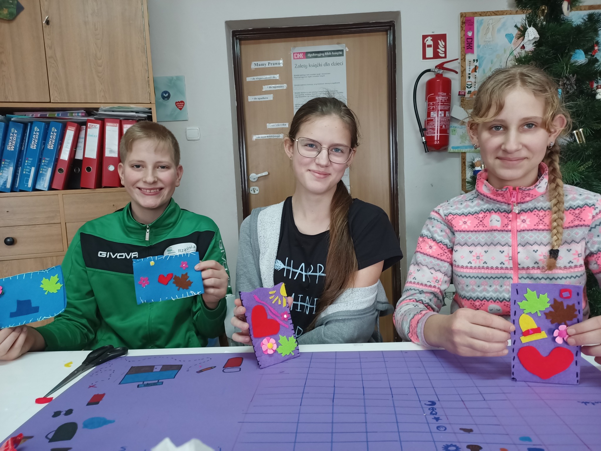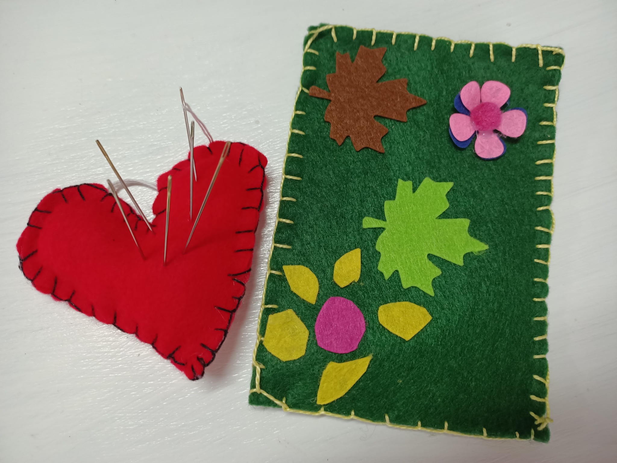 Wyczarowaliśmy prezenty dla Babci i Dziadka – gadżety z filcu: etui na okulary i poduszeczki na igły. Niezbędne artykuły zakupiliśmy w „Sklepie z babciami” z książki Dominiki Gałki w pasmanterii „Pętelka”. Pomyśleliśmy, że kiedy dziadek czyta, a babcia szyje, to dobrze mieć pod ręką jakąś przekąskę, dlatego zrobiliśmy jeszcze jeden wspólny prezent – miseczki z płyty winylowej na owoce czy słodycze.