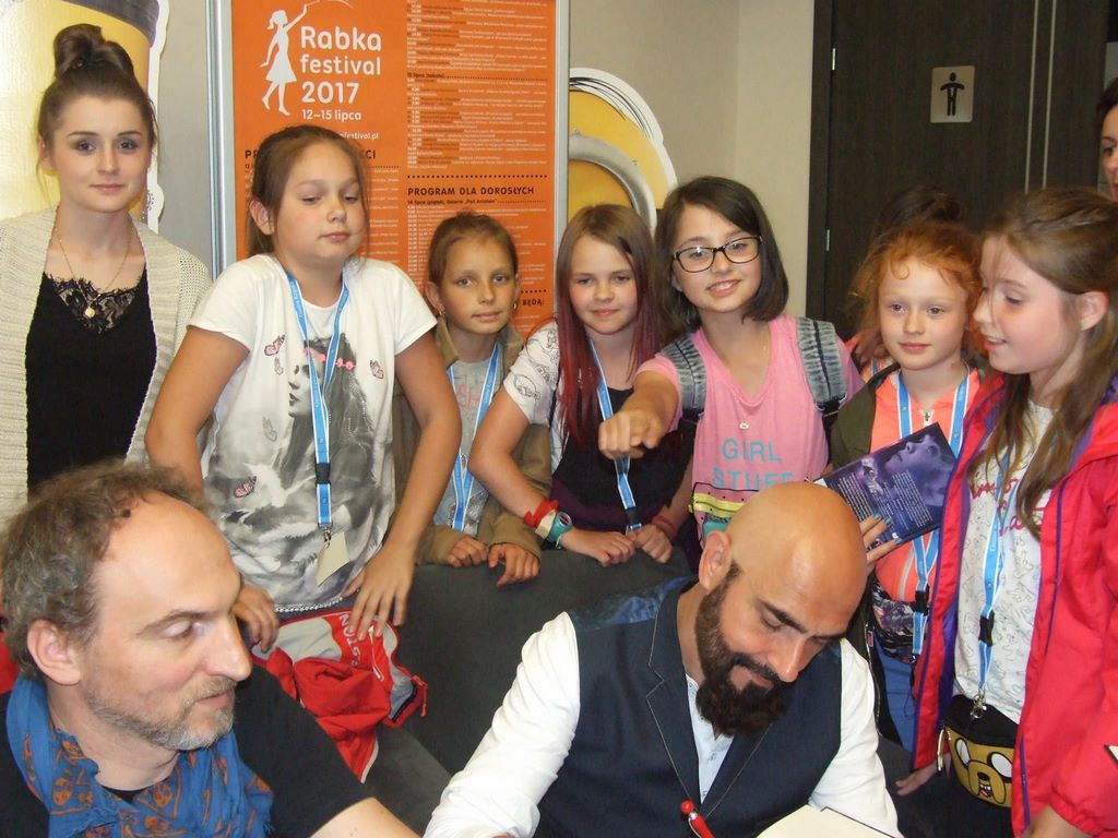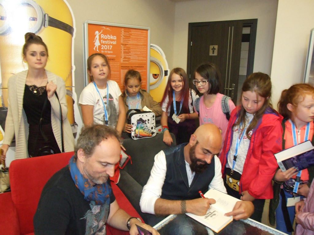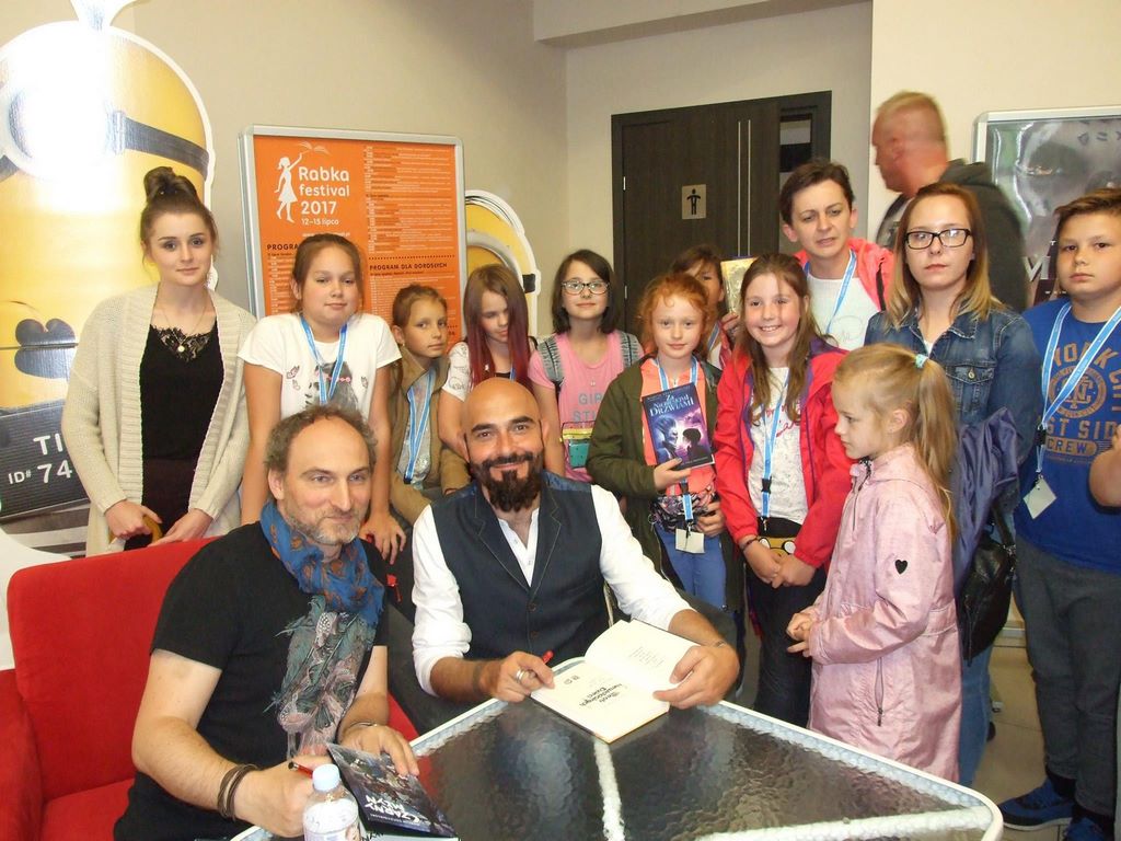 Po projekcji filmu „Za niebieskimi drzwiami” przysłuchiwaliśmy się rozmowie reżysera, Mariusza Paleja z autorem książki Marcinem Szczygielskim. Wiemy już jak z książki powstał film, poznaliśmy kilka tajemnic zakulisowych z charakteryzatorni i mogliśmy osobiście poznać twórców, zamienić z nimi kilka słów i pogratulować. Wspólne zdjęcie oczywiście i autografy!