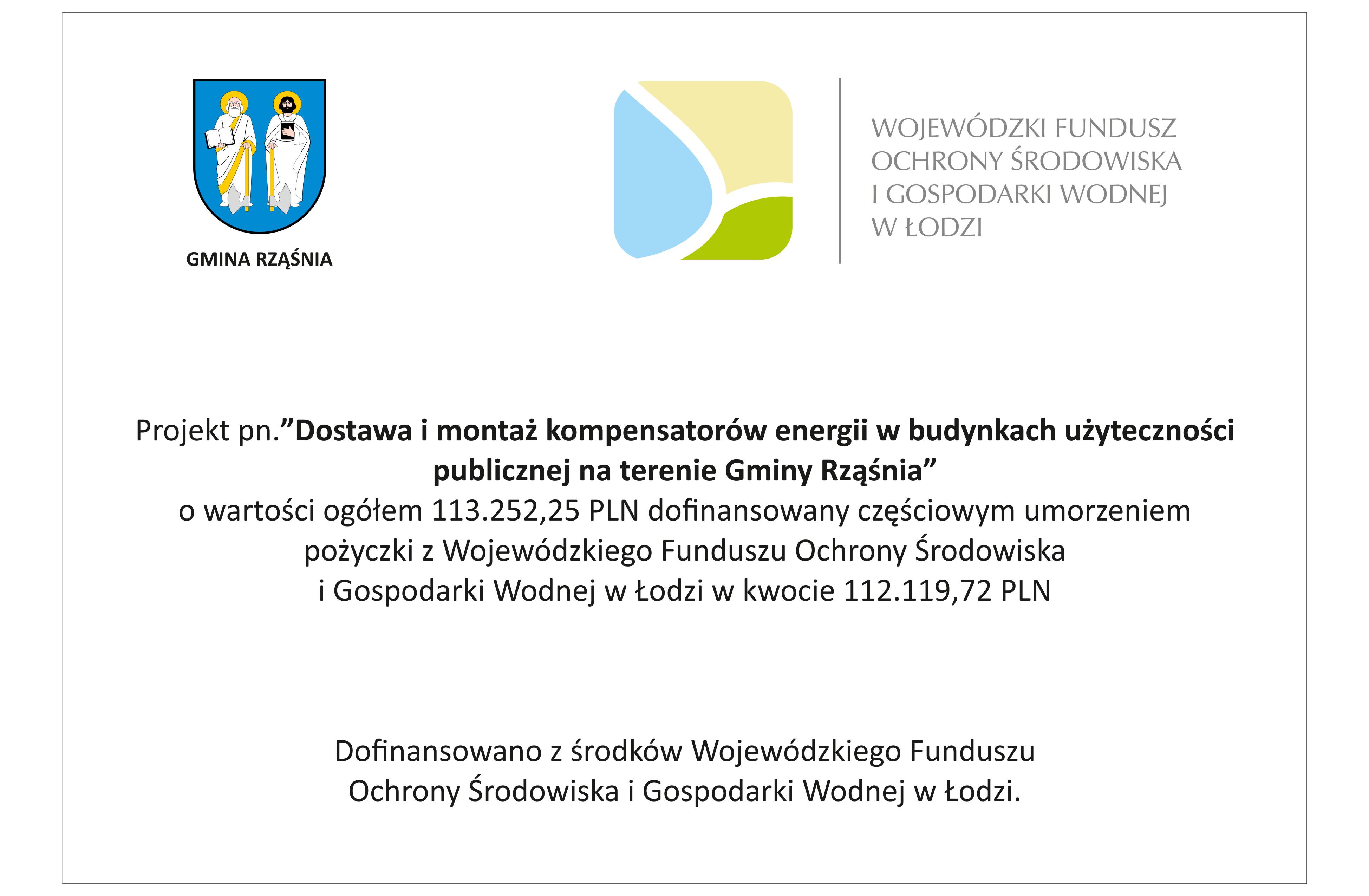Wyżej wymienione inwestycje zostały zrealizowane dzięki umowie nr U24087/19022 z dnia 31.12.2024 o umorzenie zawartej z Wojewódzkim Funduszem Ochrony Środowiska i Gospodarki Wodnej w Łodzi.