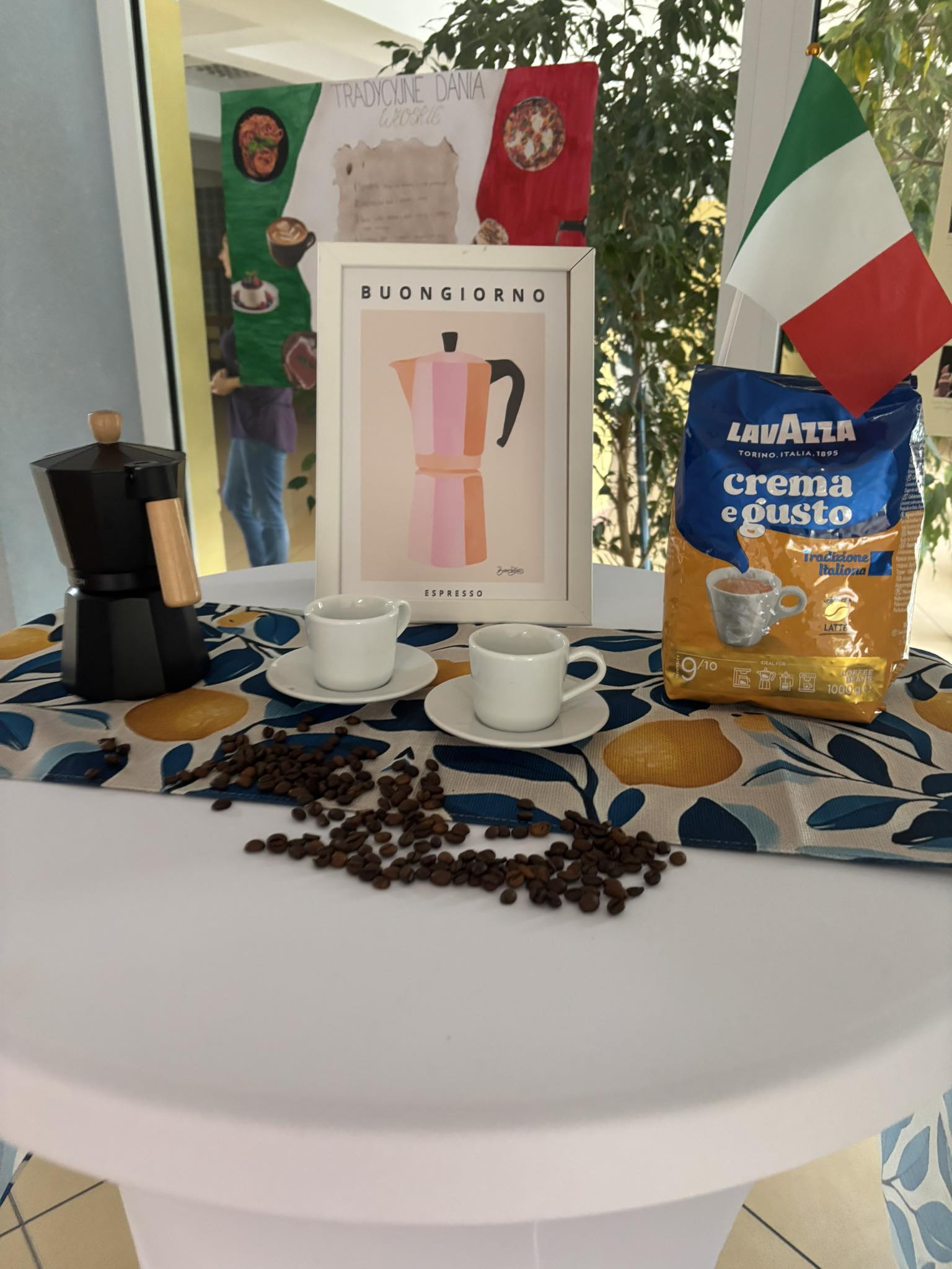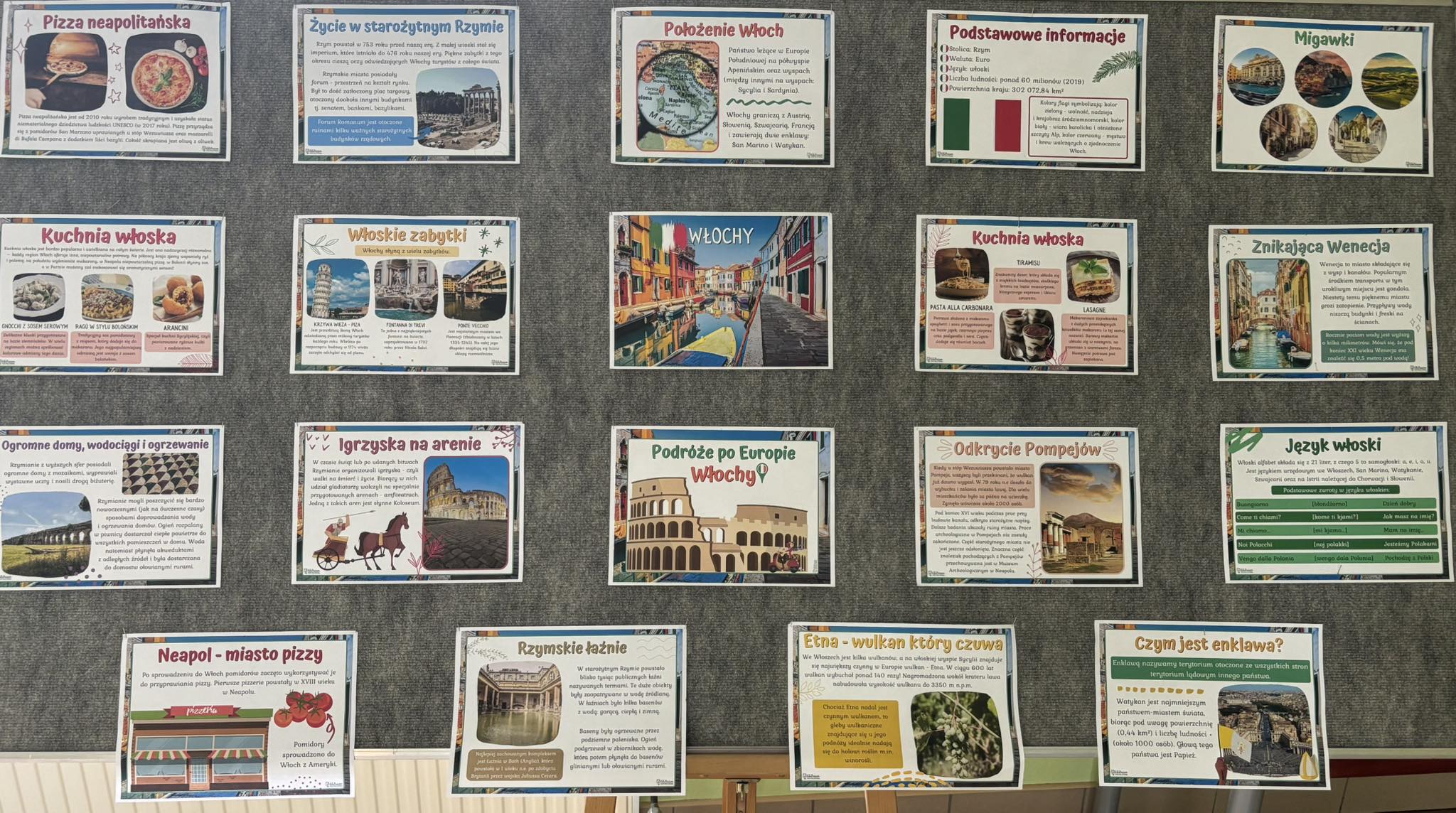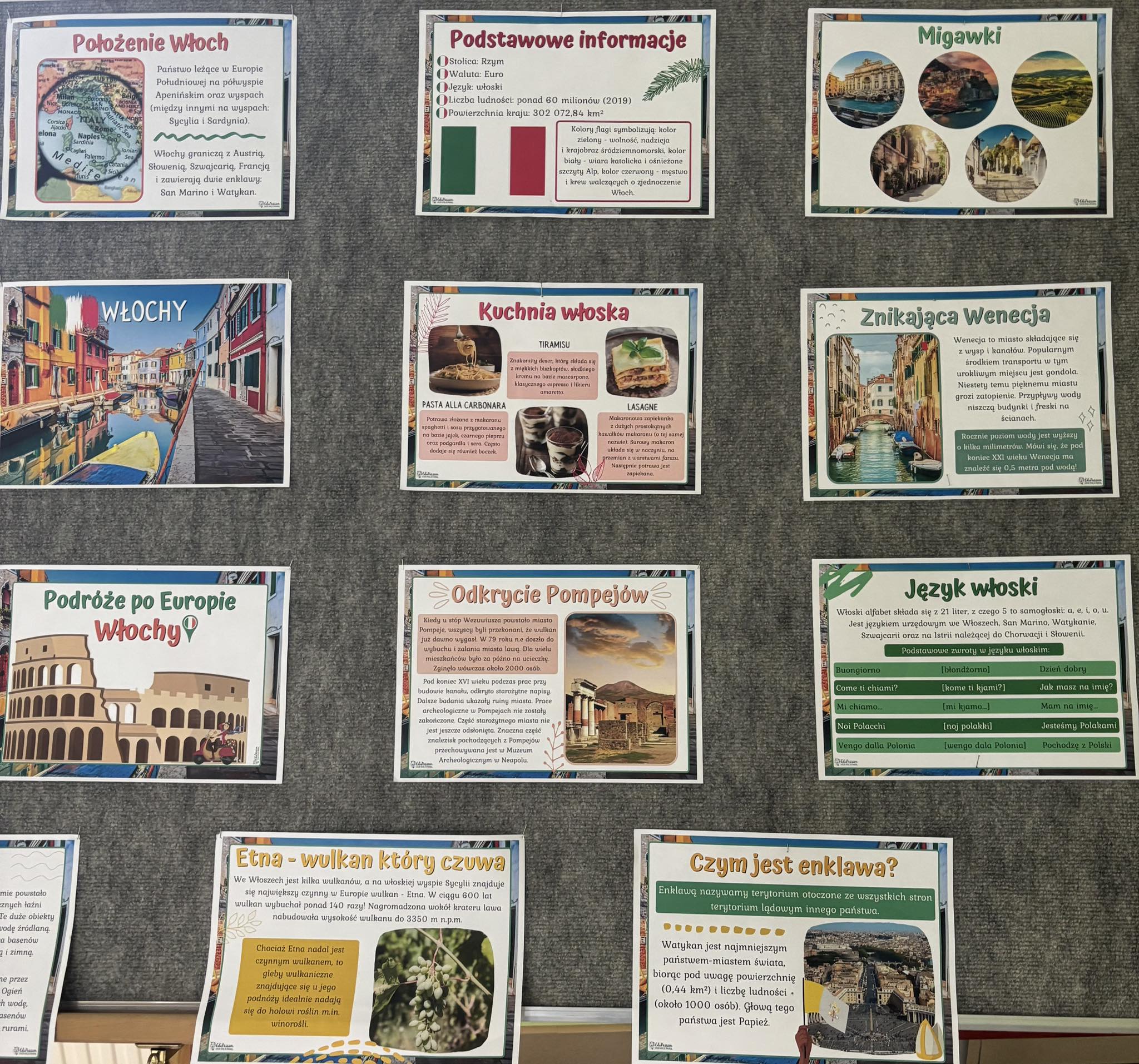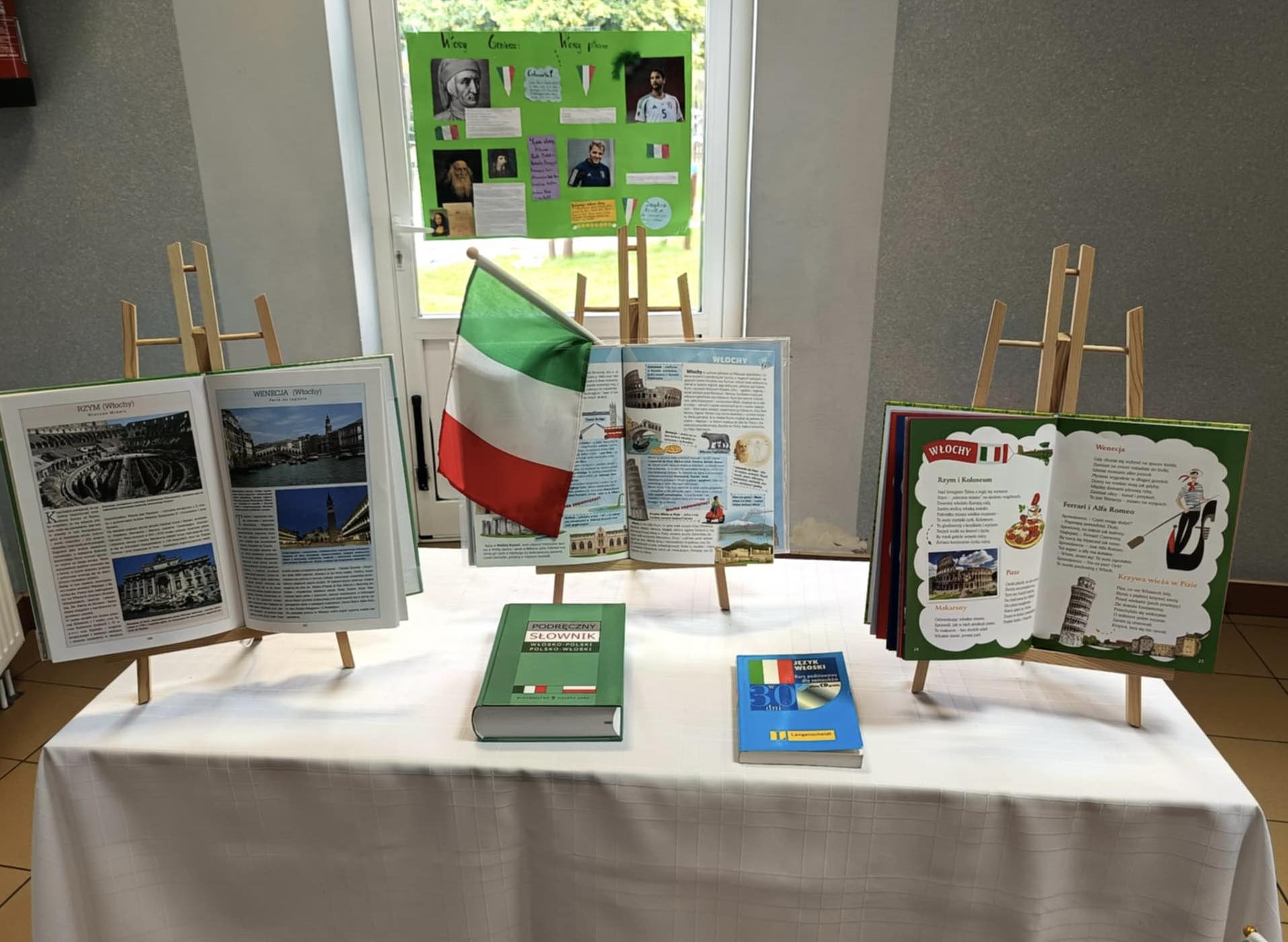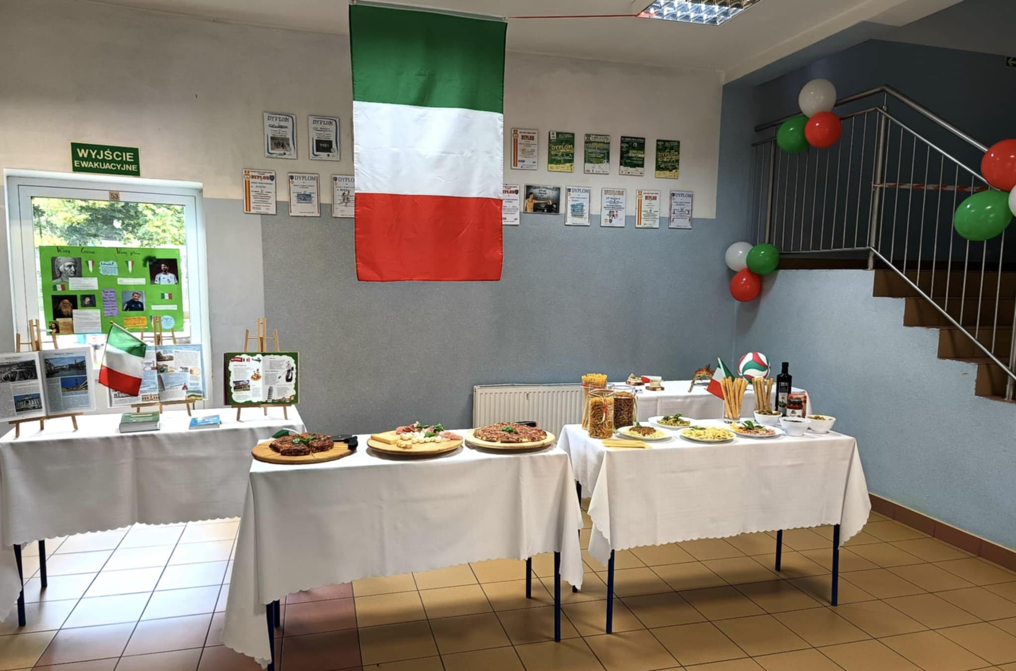 Przygotowali się do tego dnia zakładając ubrania w barwach Włoch czerwonym, zielonym i białym. Na holu głównym przygotowano dekoracje w stylu włoskim, zawisła włoska i polska flaga. Prace projektowe wykonane przez uczniów przybliżyły nam zabytki, artystów i kulturę Włoch.