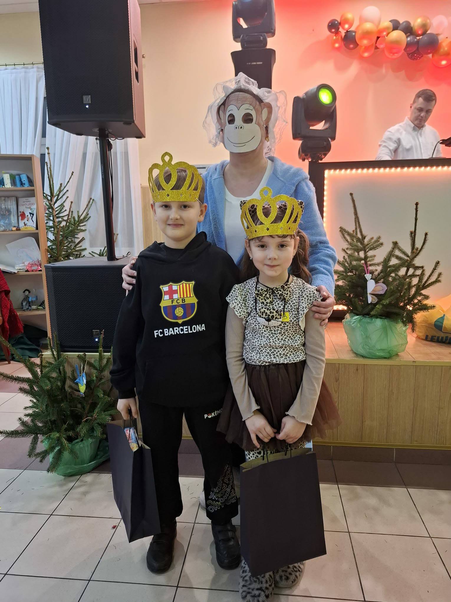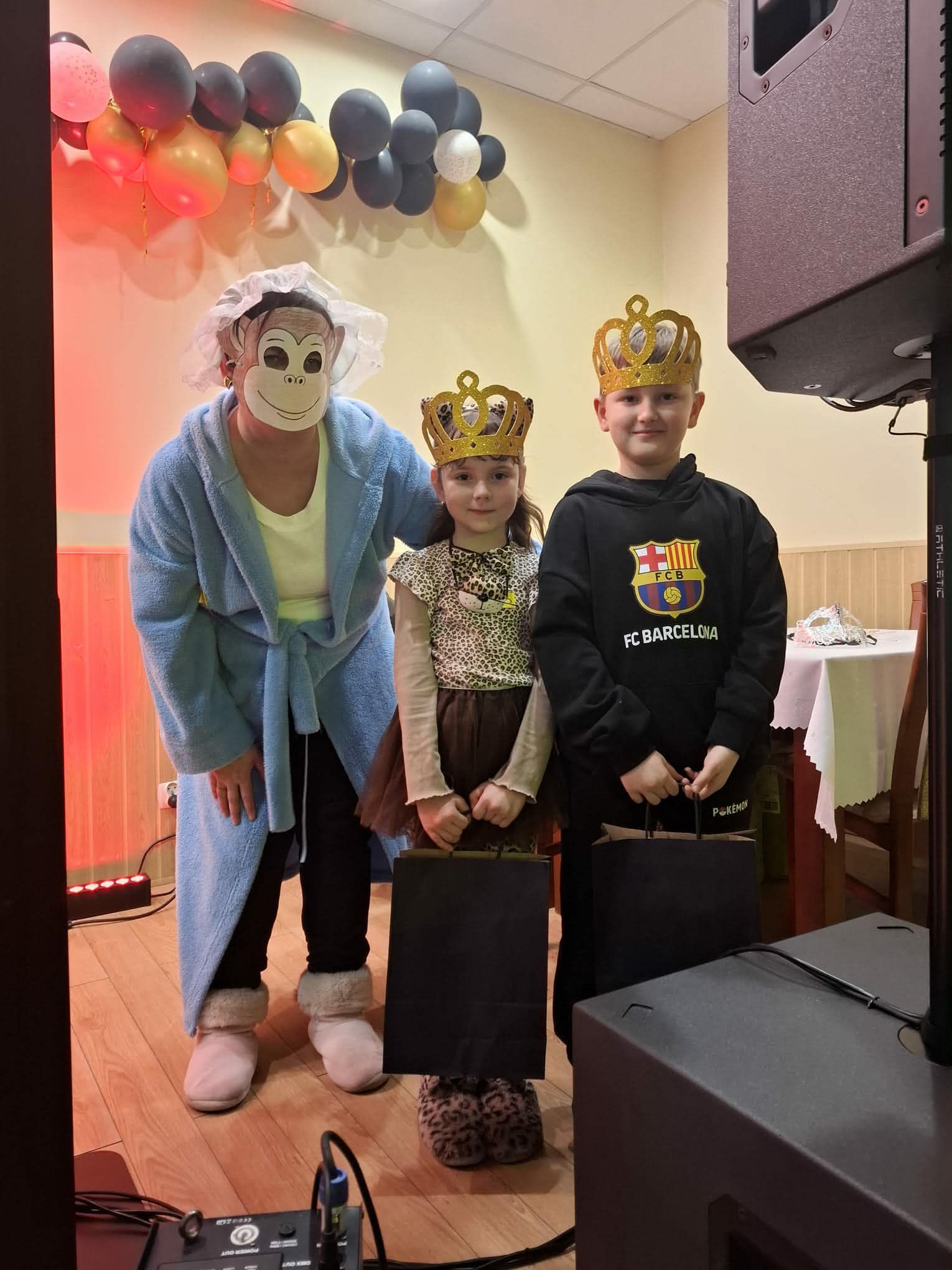 Ponadto wybraliśmy parę królewską w bibliotecznym Królestwie Bajek – to z kolei nagroda dla dzieci za całoroczną pracę w bibliotece, aktywny udział w letnich i zimowych zajęciach, gdyż nasz bal był też podsumowaniem Roku 2025. I tak w telegraficznym skrócie: