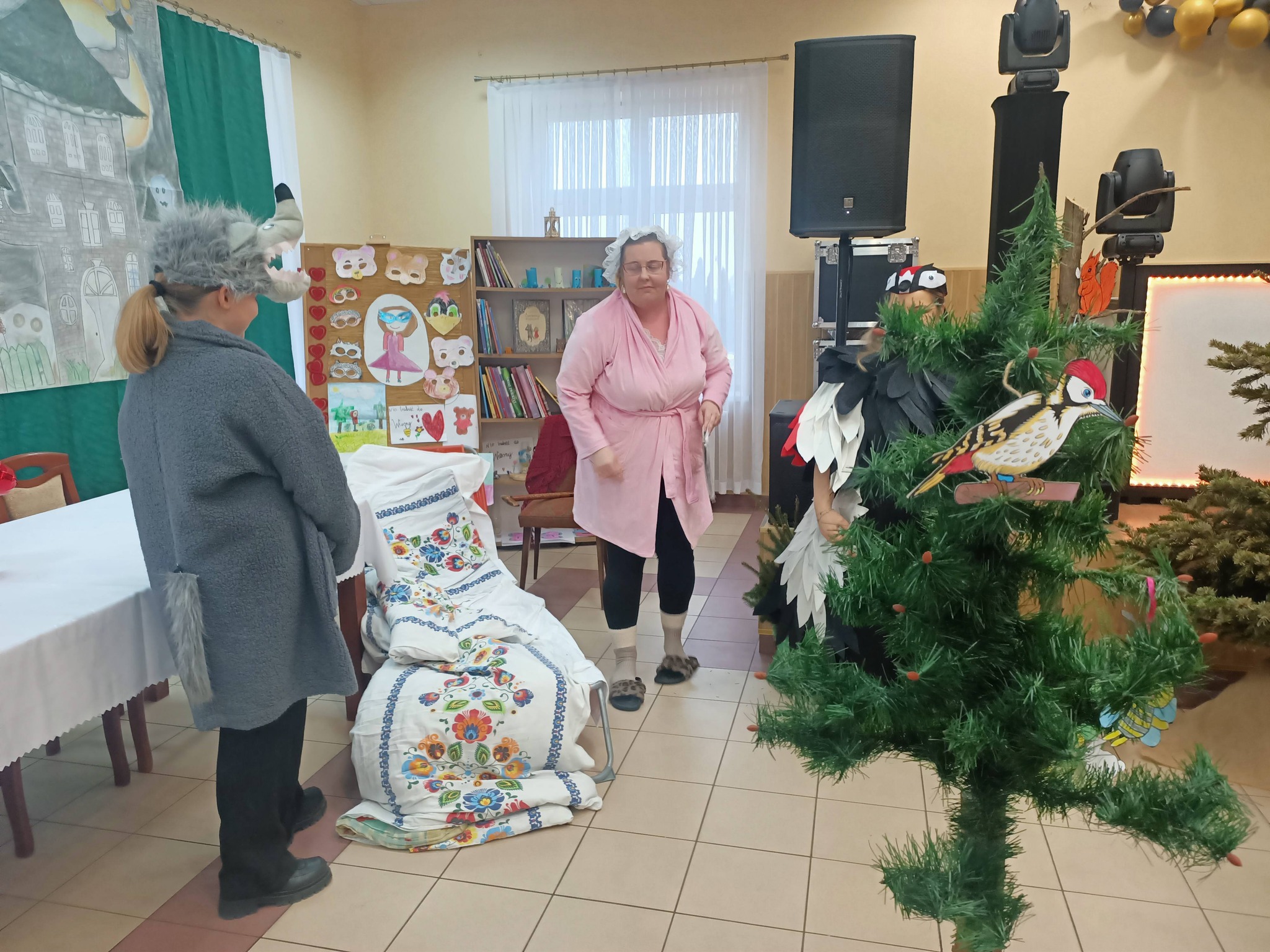 Bal rozpoczął się przedstawieniem Czerwony Kapturek, w którym udział wzięli dorośli i dzieci. Uczestnicy zachwycili licznie zgromadzoną publiczność wspaniałą grą oraz kreatywnością swoich przebrań – fantazyjnych, własnoręcznie przygotowanych kostiumów. Zostali nagrodzeni owacją na stojąco oraz upominkami z Urzędu Gminy i Gminnej Biblioteki Publicznej w Rząśni.