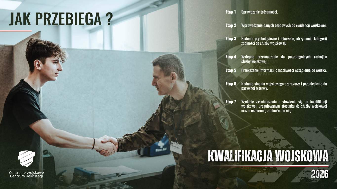 2 lutego na terenie całego kraju rozpoczyna się Kwalifikacja Wojskowa 2026, która potrwa do 30 kwietnia br. Kwalifikacja wojskowa to istotny element procesu określenia zdolności zasobowych państwa, pozwalający na uregulowanie stosunku obywatela do służby wojskowej. Celem kwalifikacji jest przede wszystkim określenie fizycznej i psychicznej zdolności do czynnej służby wojskowej osób podlegających temu obowiązkowi, a także osób zgłaszających się w trybie ochotniczym.