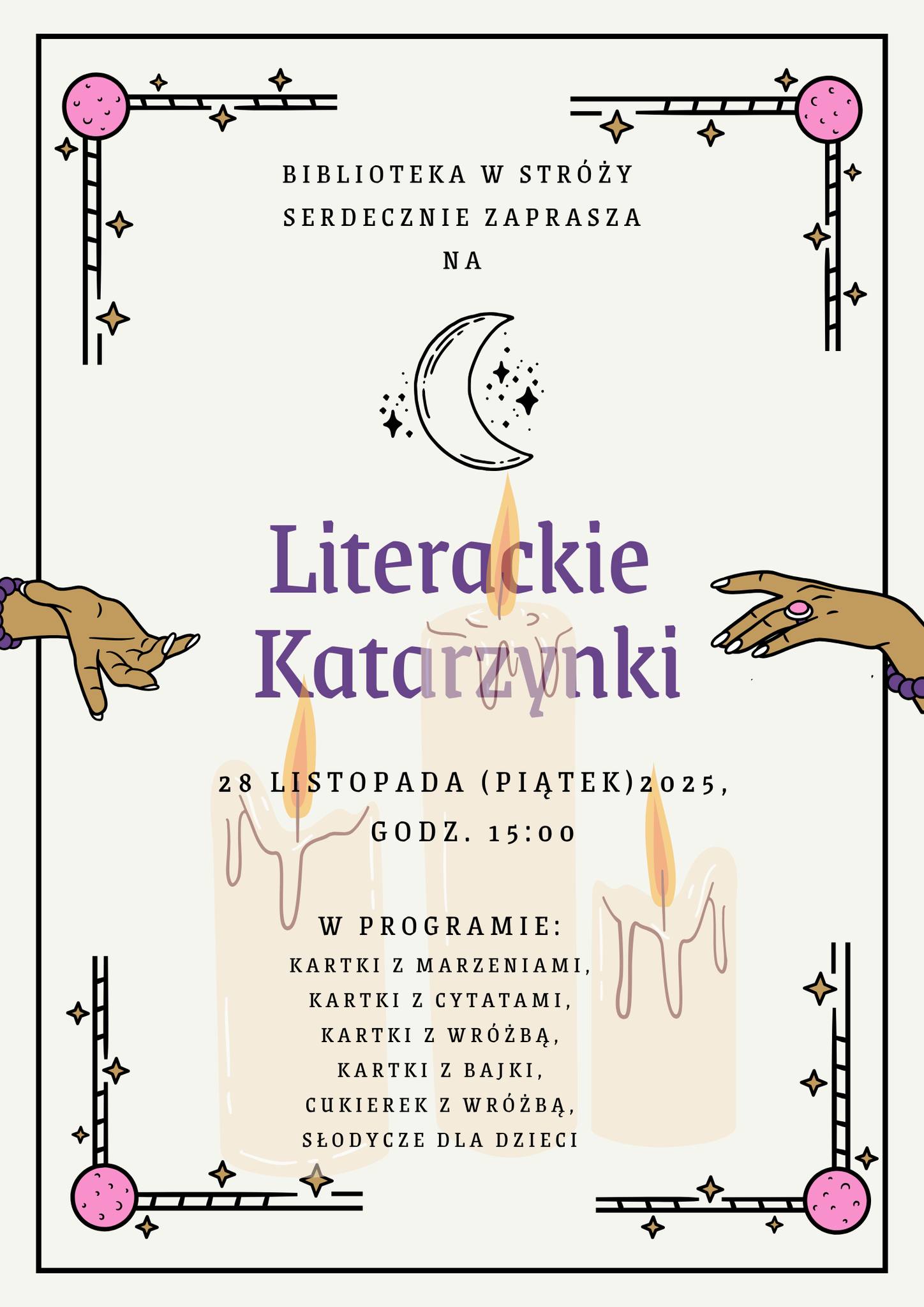 Gminna Biblioteka Publiczna w Rząśni, Filia w Stróży serdecznie zaprasza w piątek 28 listopada od godz. 15.00 na „Literackie Katarzynki”.