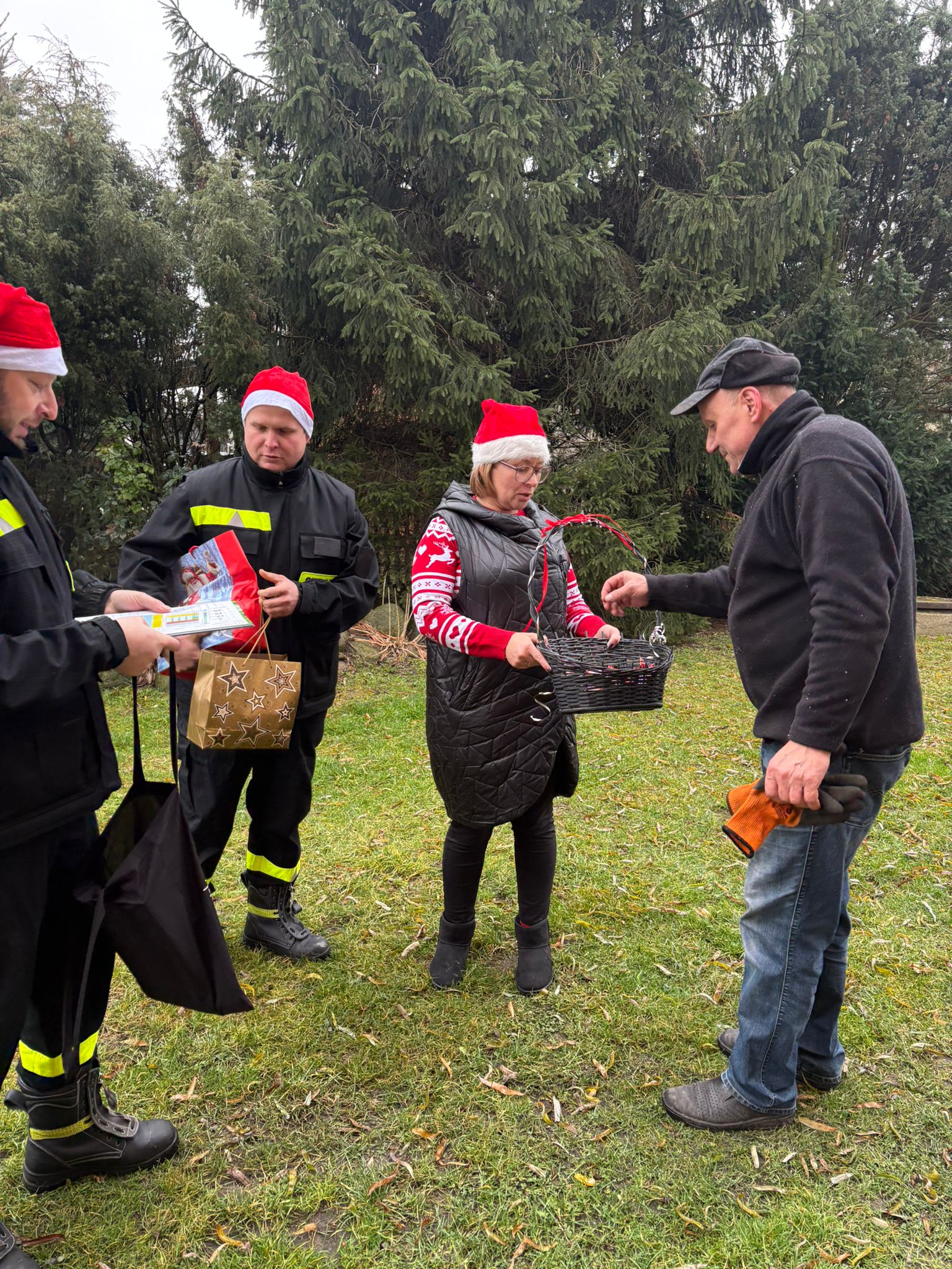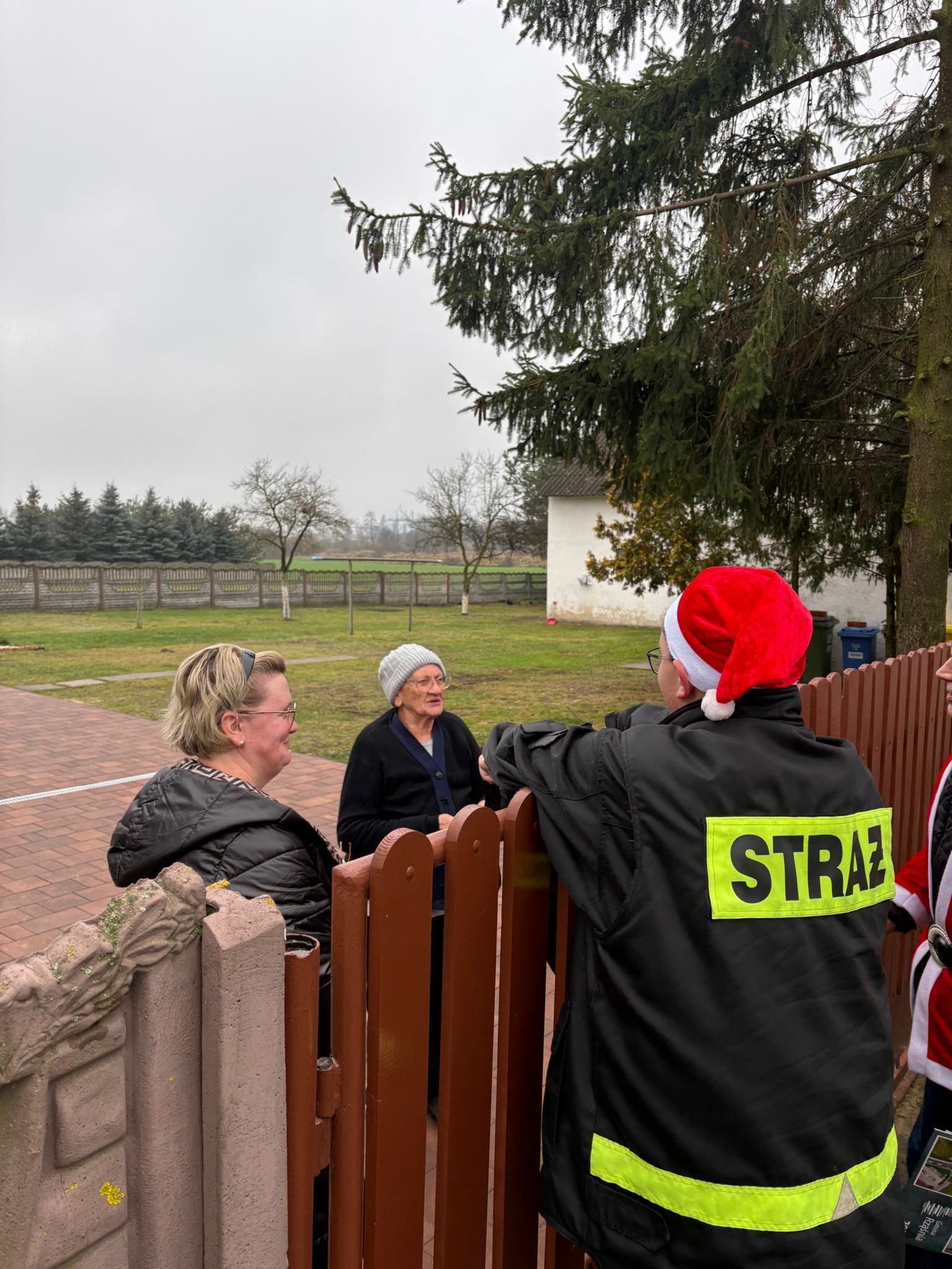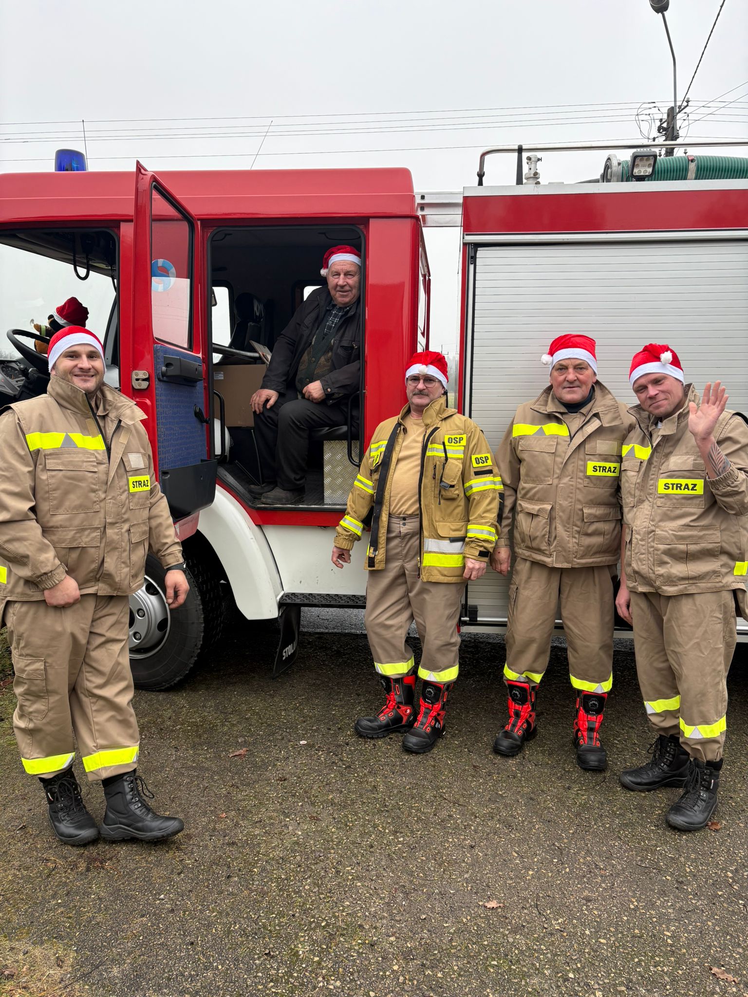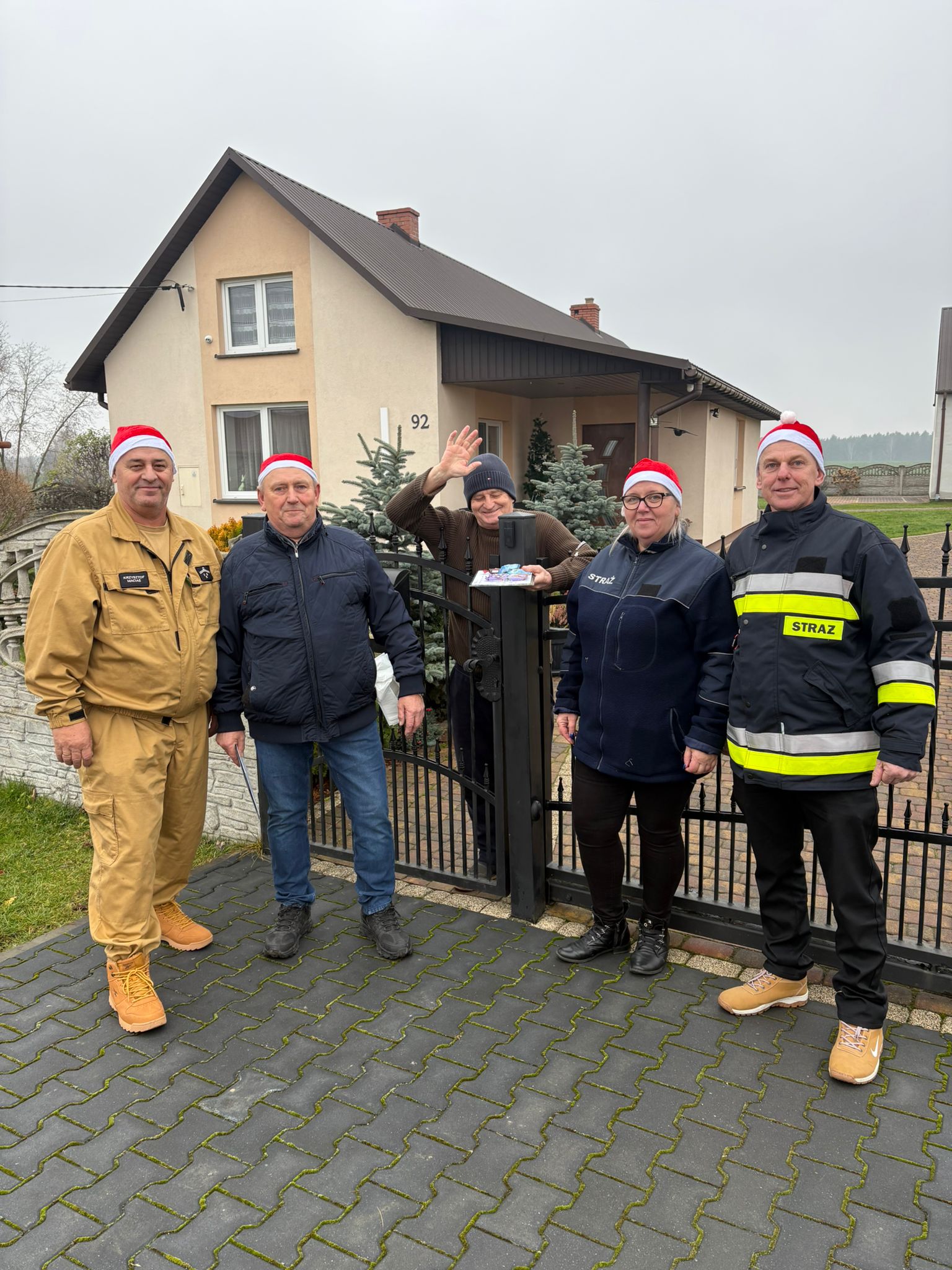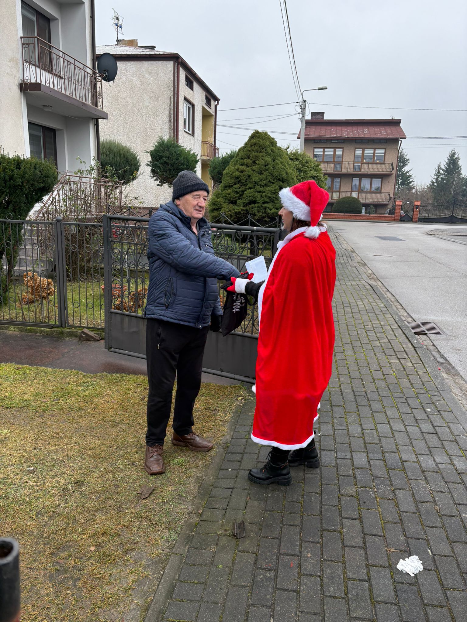 Strażacy – Mikołaje odwiedzali zarówno najmłodszych, jak i dorosłych mieszkańców, wręczając słodycze oraz gminne kalendarze na 2026 rok jako świąteczny upominek. Na twarzach napotkanych osób widzieliśmy mnóstwo uśmiechów, a ciepłe reakcje mieszkańców były najlepszym dowodem na to, że takie inicjatywy są potrzebne i budują naszą lokalną wspólnotę.