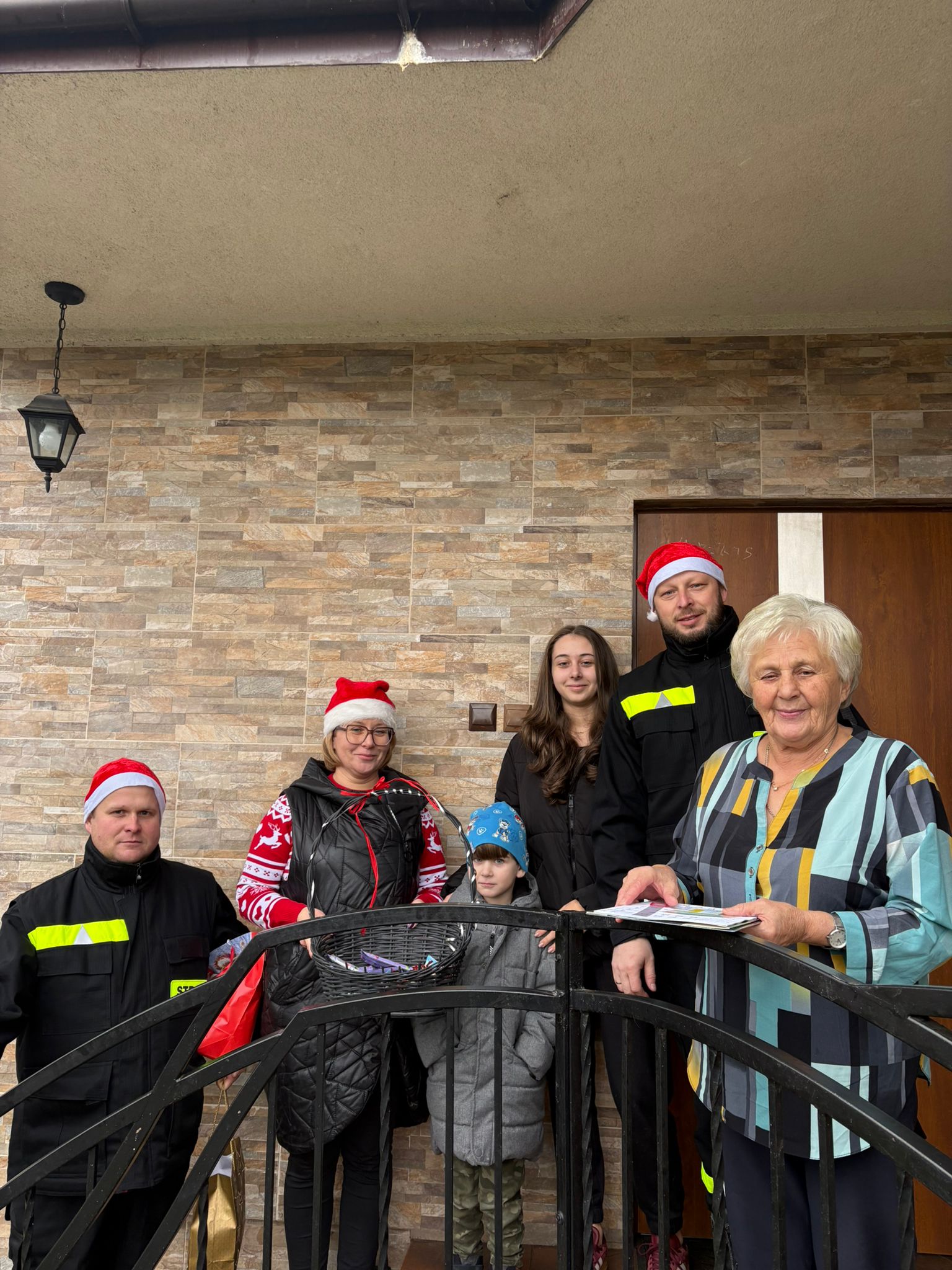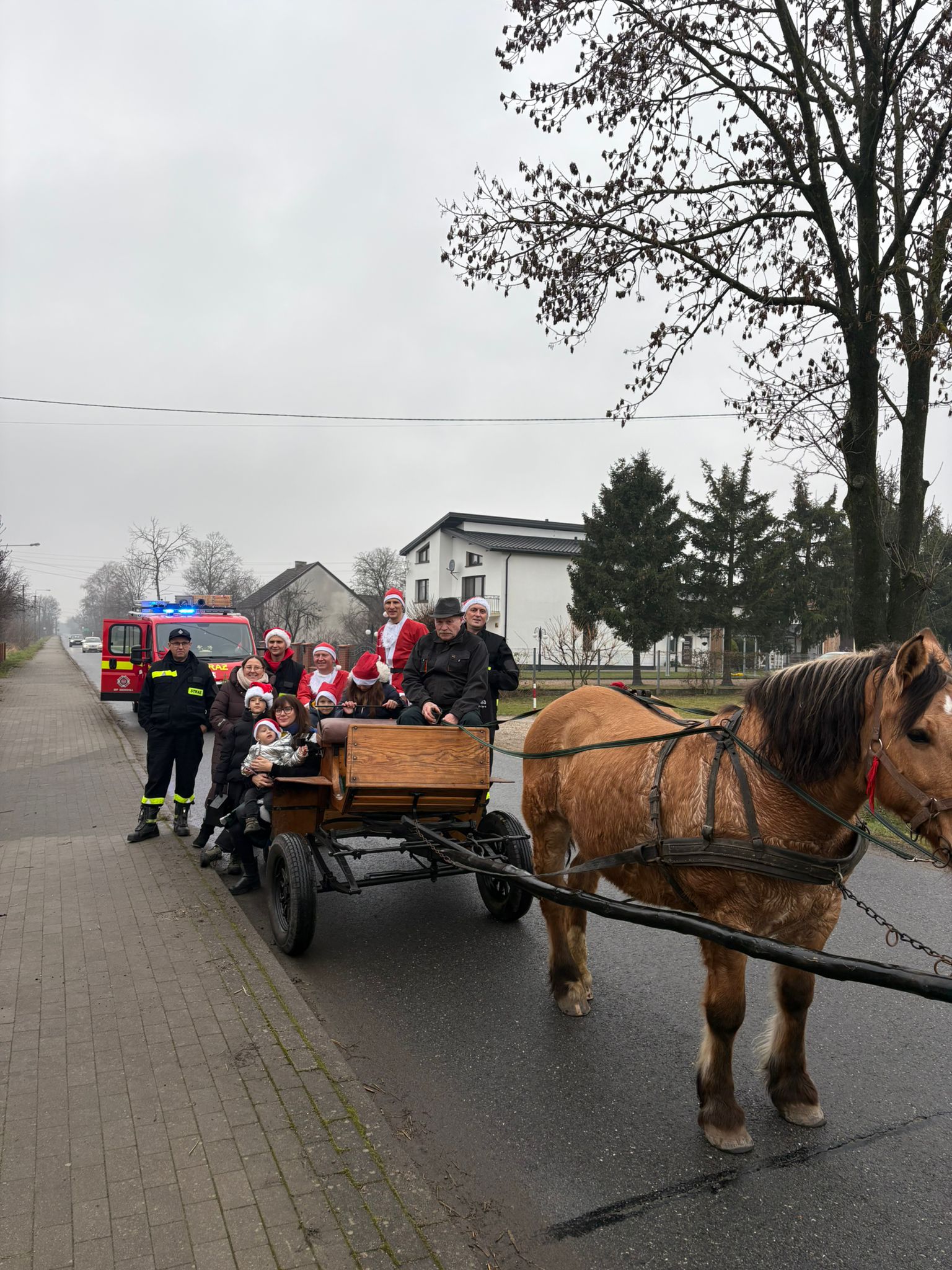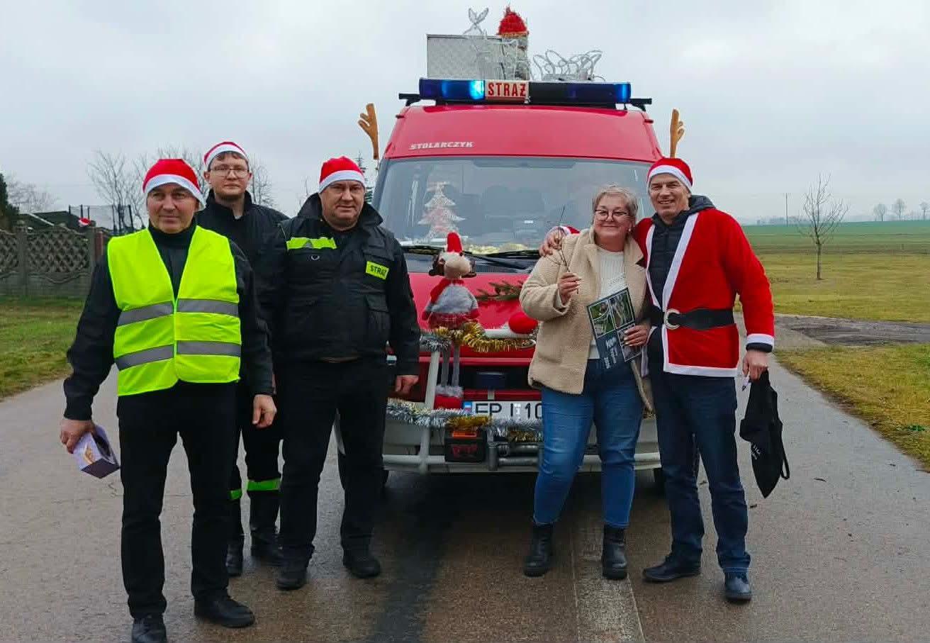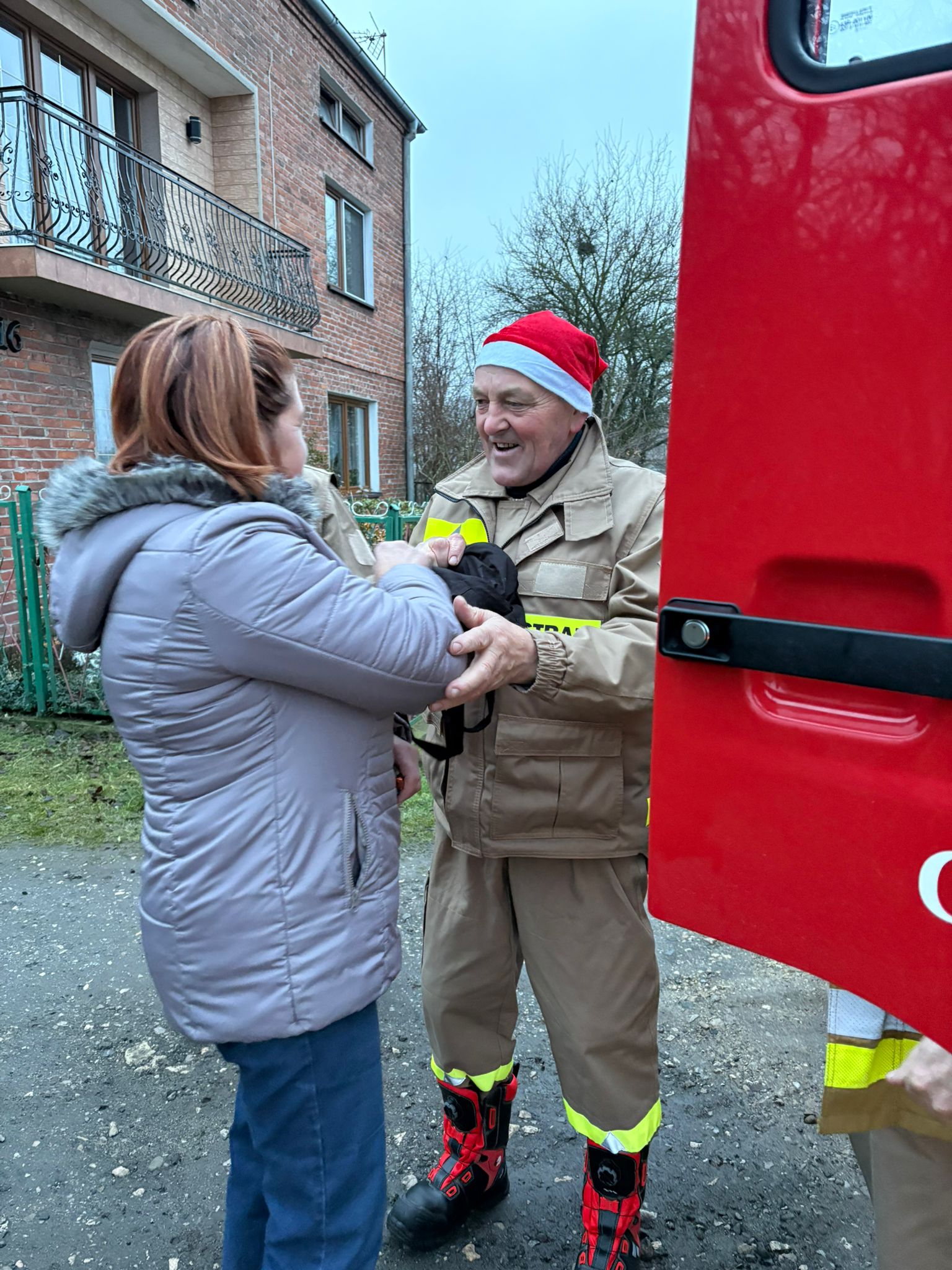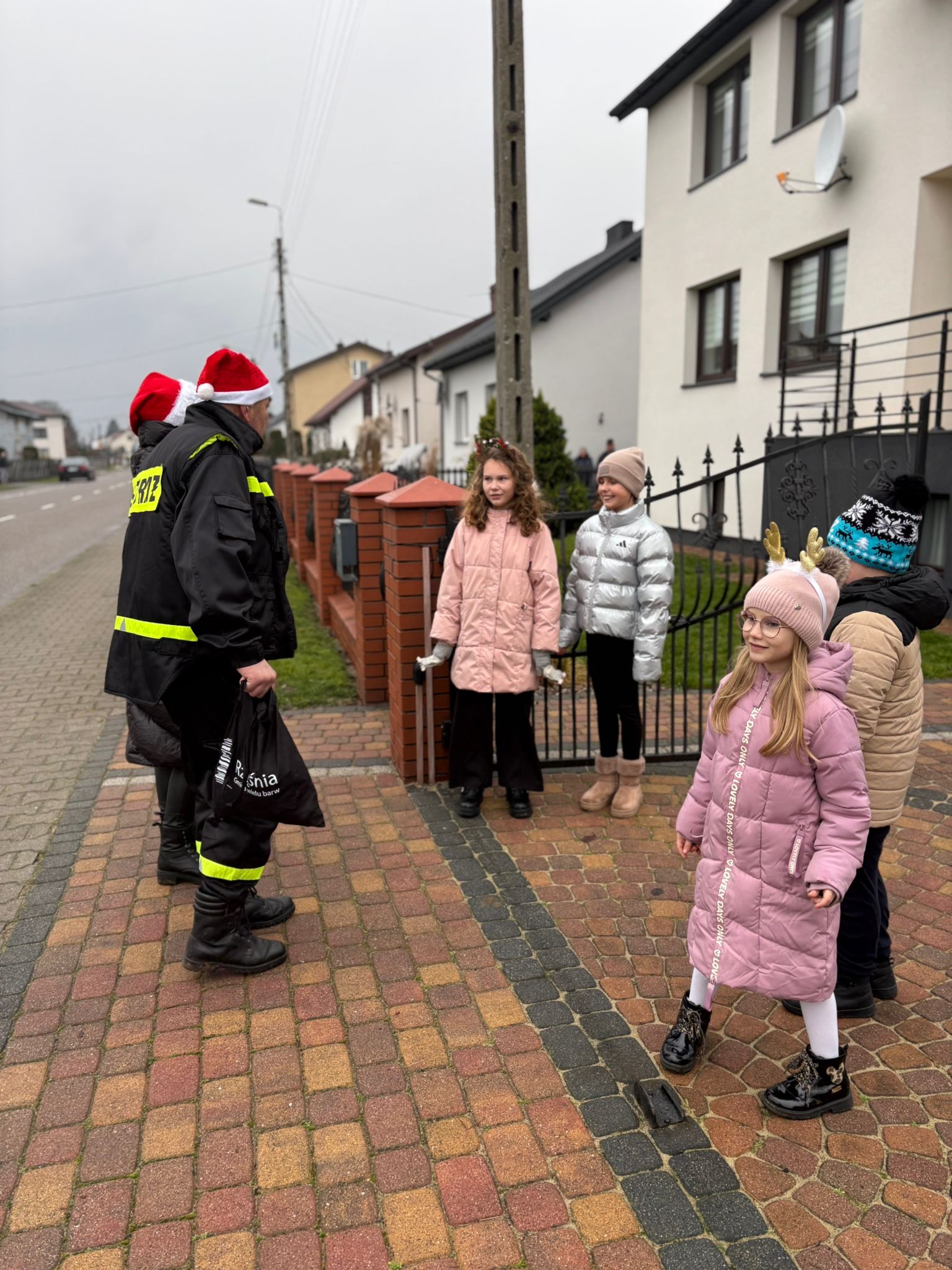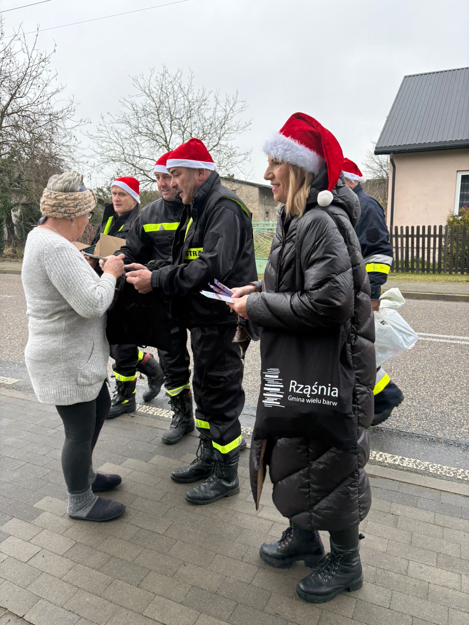 Strażacy – Mikołaje odwiedzali zarówno najmłodszych, jak i dorosłych mieszkańców, wręczając słodycze oraz gminne kalendarze na 2026 rok jako świąteczny upominek. Na twarzach napotkanych osób widzieliśmy mnóstwo uśmiechów, a ciepłe reakcje mieszkańców były najlepszym dowodem na to, że takie inicjatywy są potrzebne i budują naszą lokalną wspólnotę.