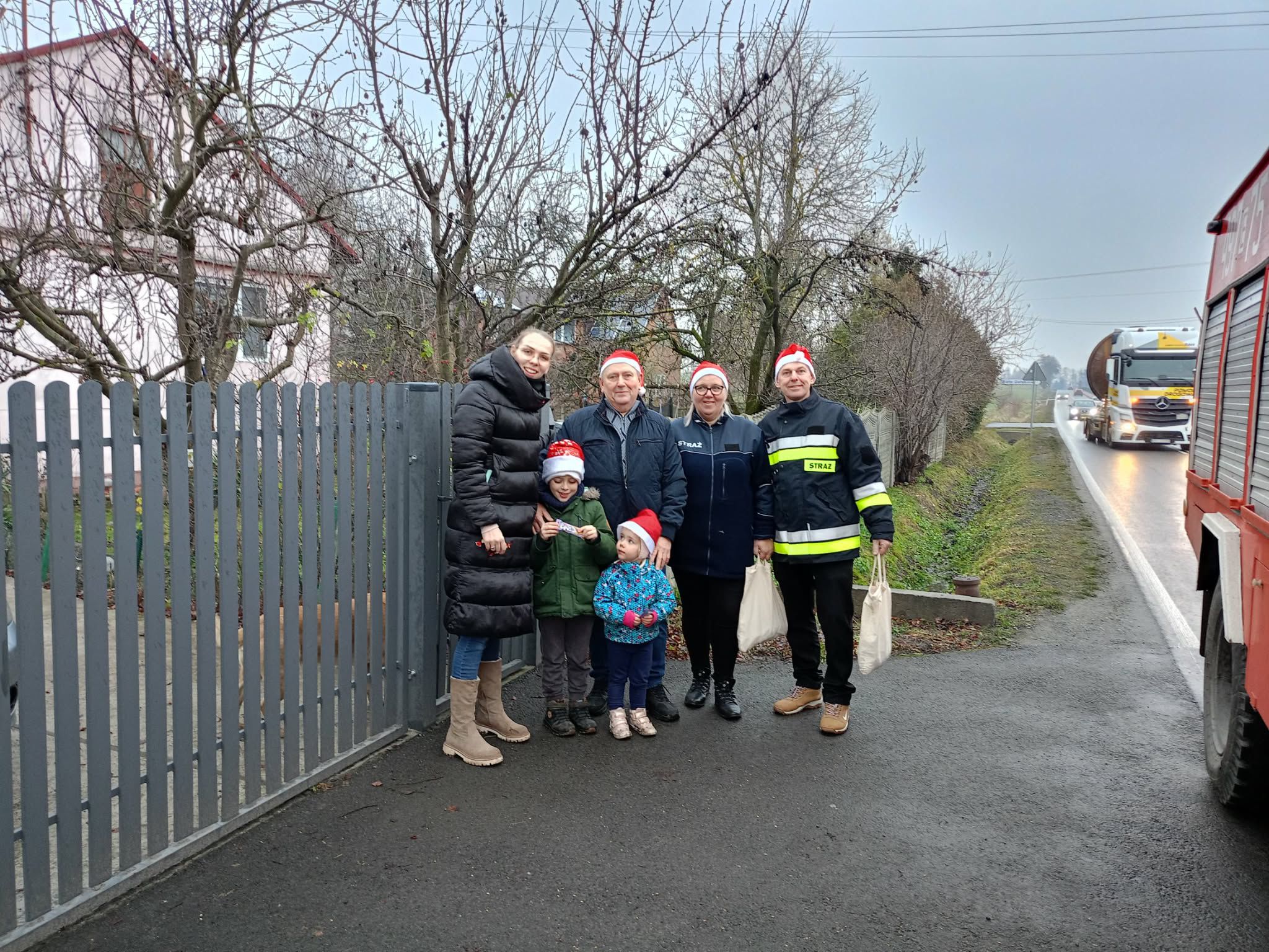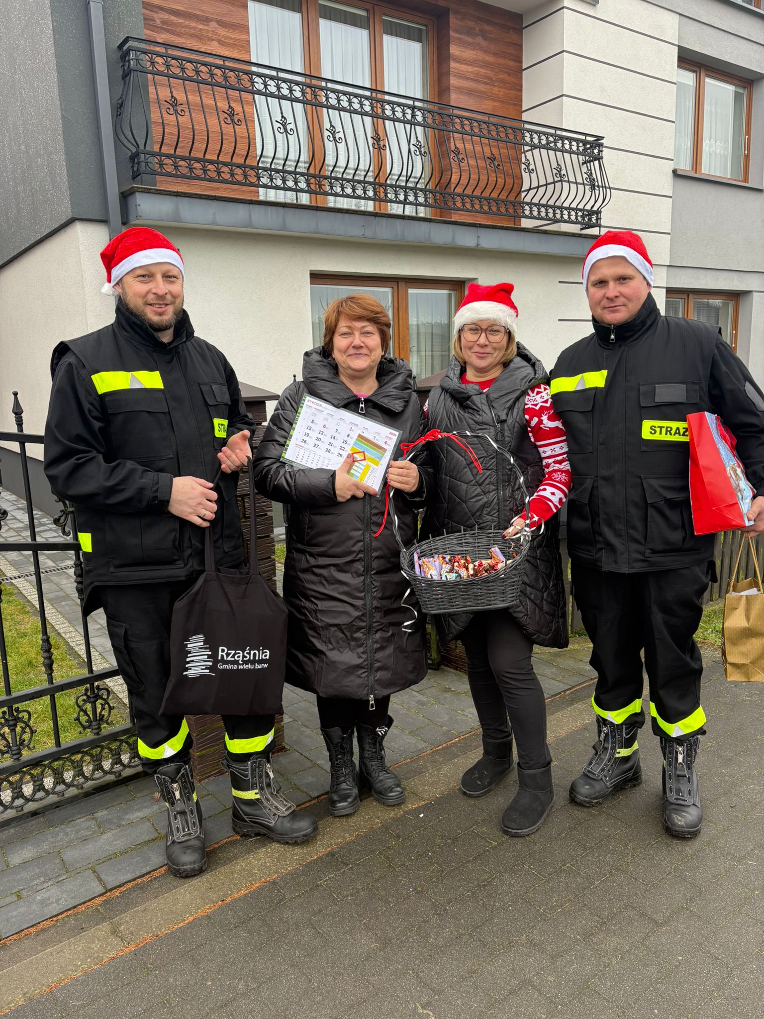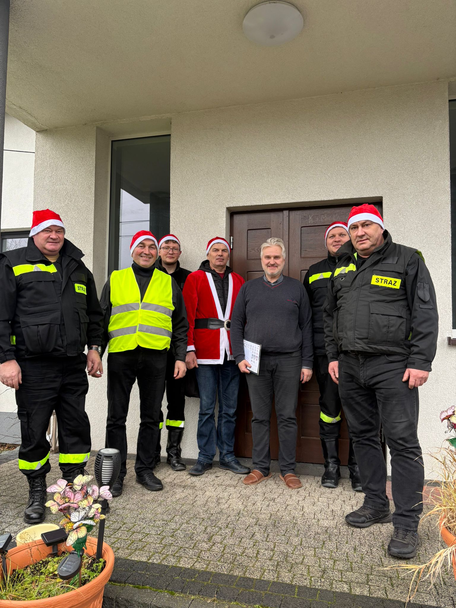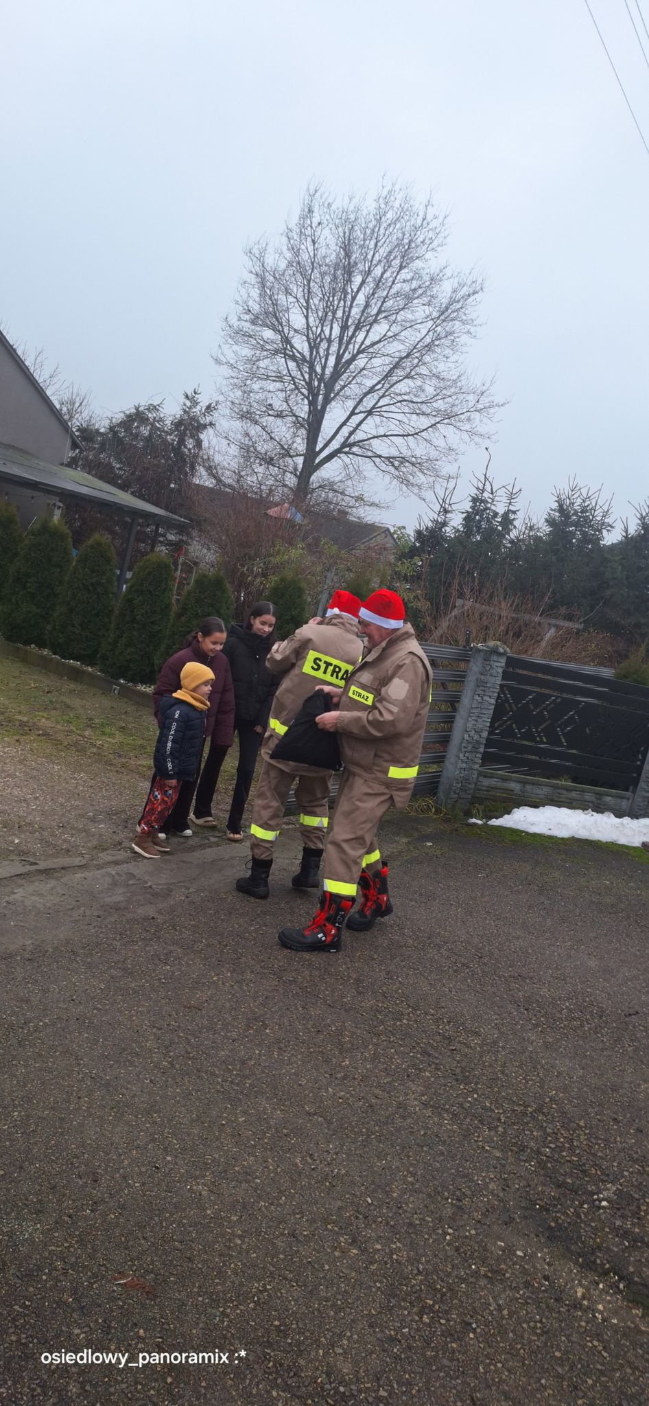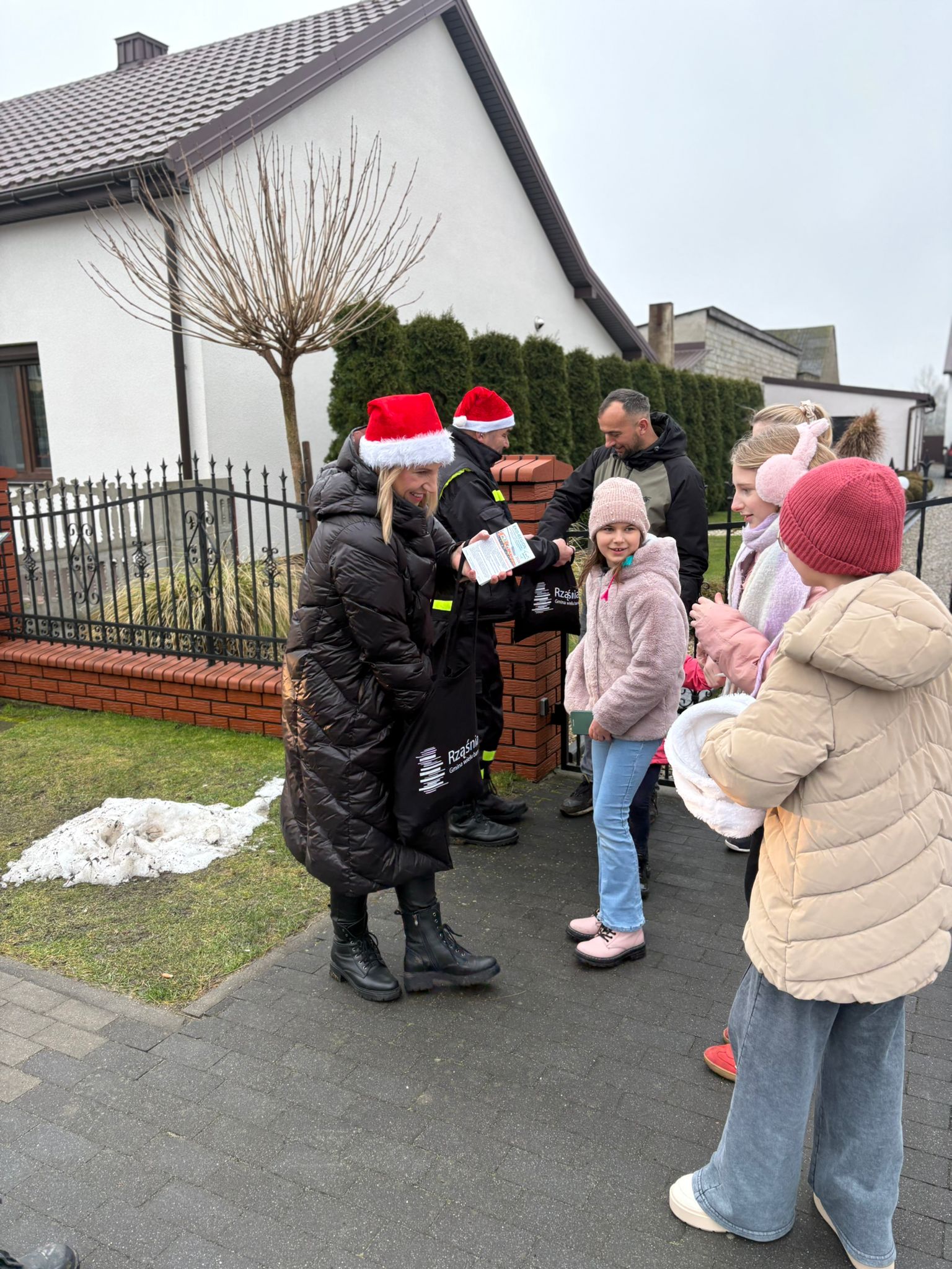 Strażacy – Mikołaje odwiedzali zarówno najmłodszych, jak i dorosłych mieszkańców, wręczając słodycze oraz gminne kalendarze na 2026 rok jako świąteczny upominek. Na twarzach napotkanych osób widzieliśmy mnóstwo uśmiechów, a ciepłe reakcje mieszkańców były najlepszym dowodem na to, że takie inicjatywy są potrzebne i budują naszą lokalną wspólnotę.