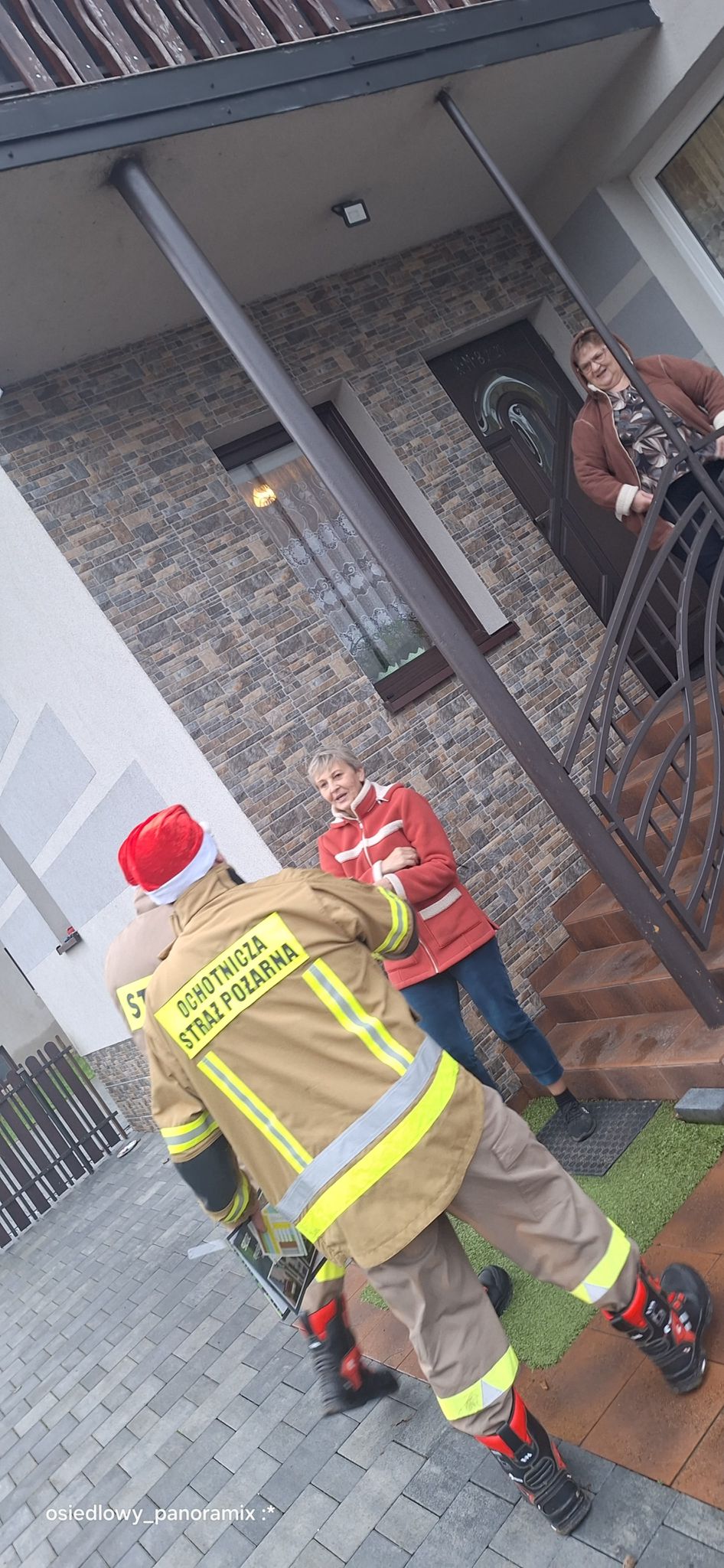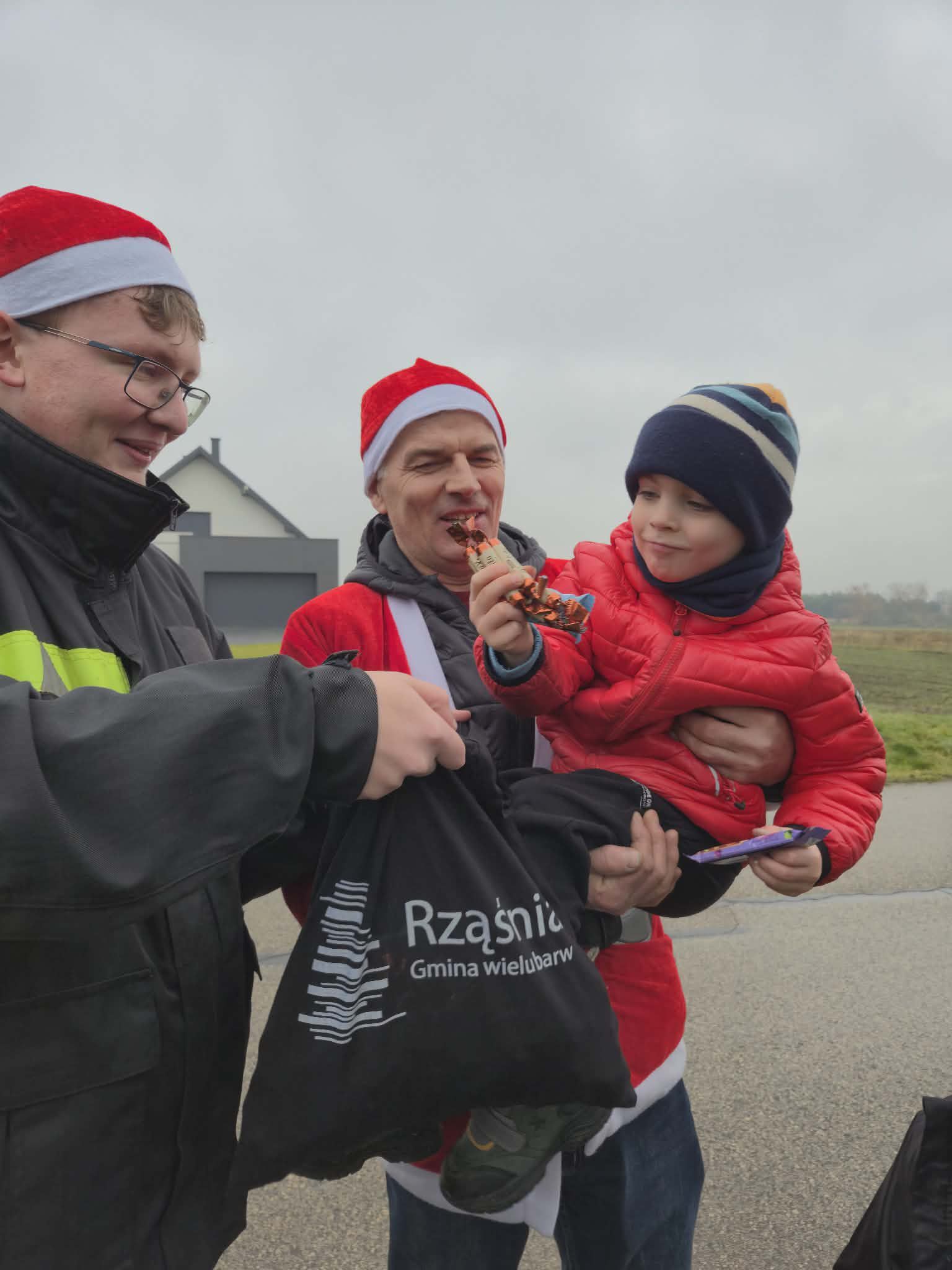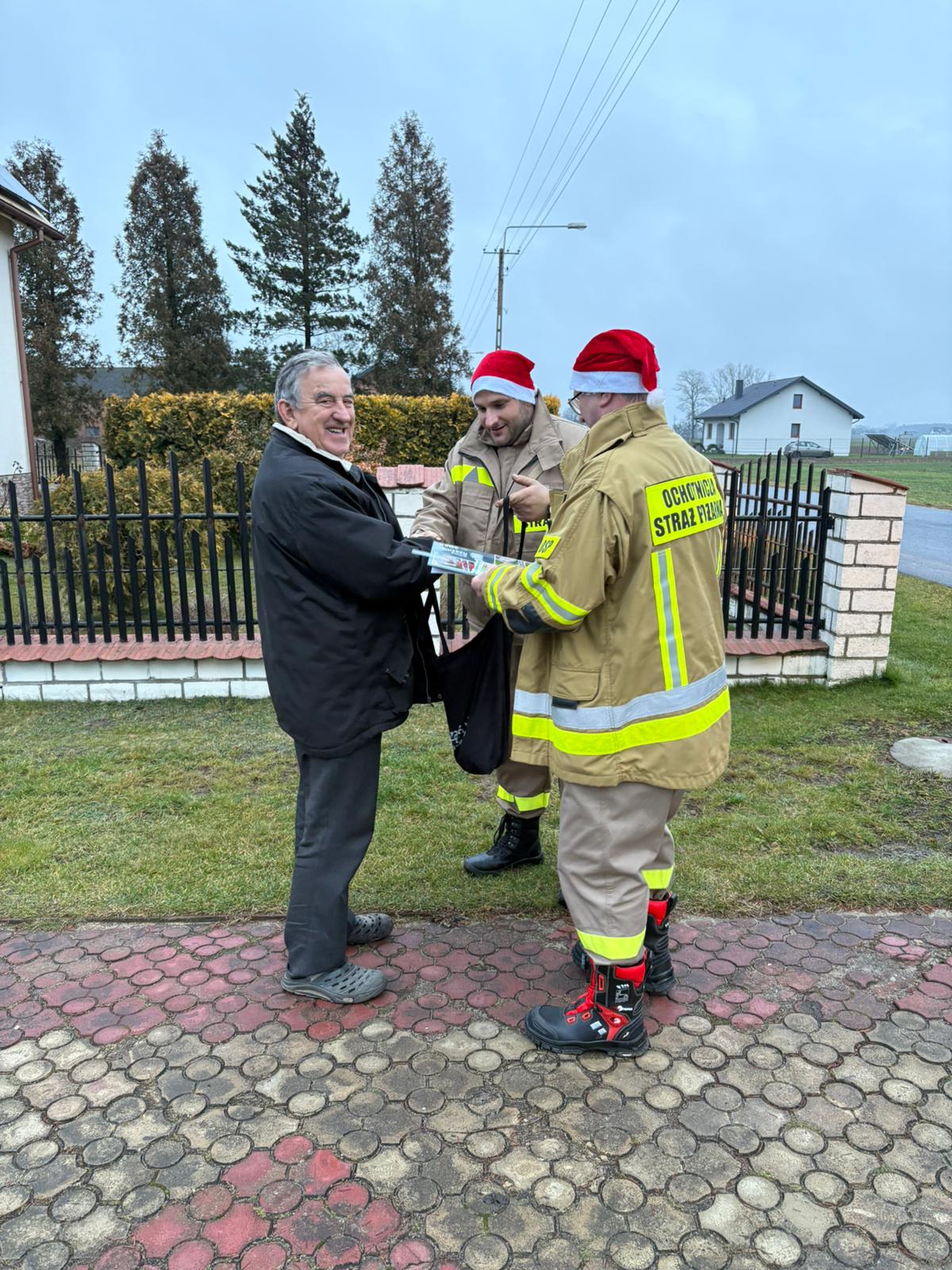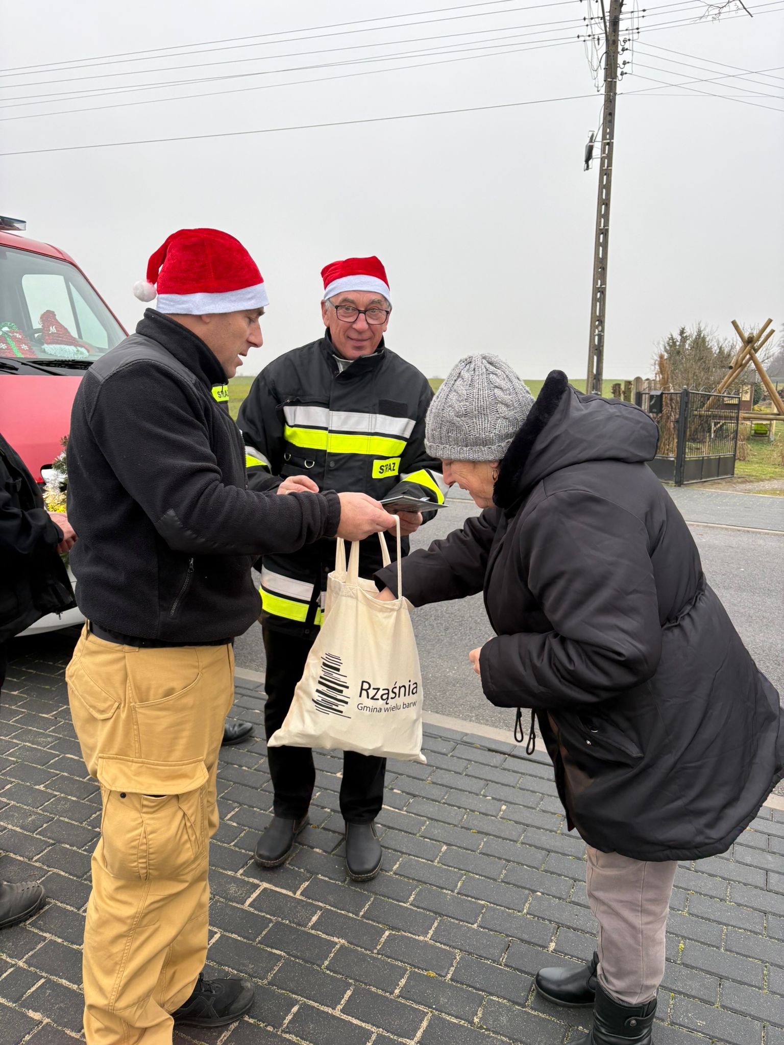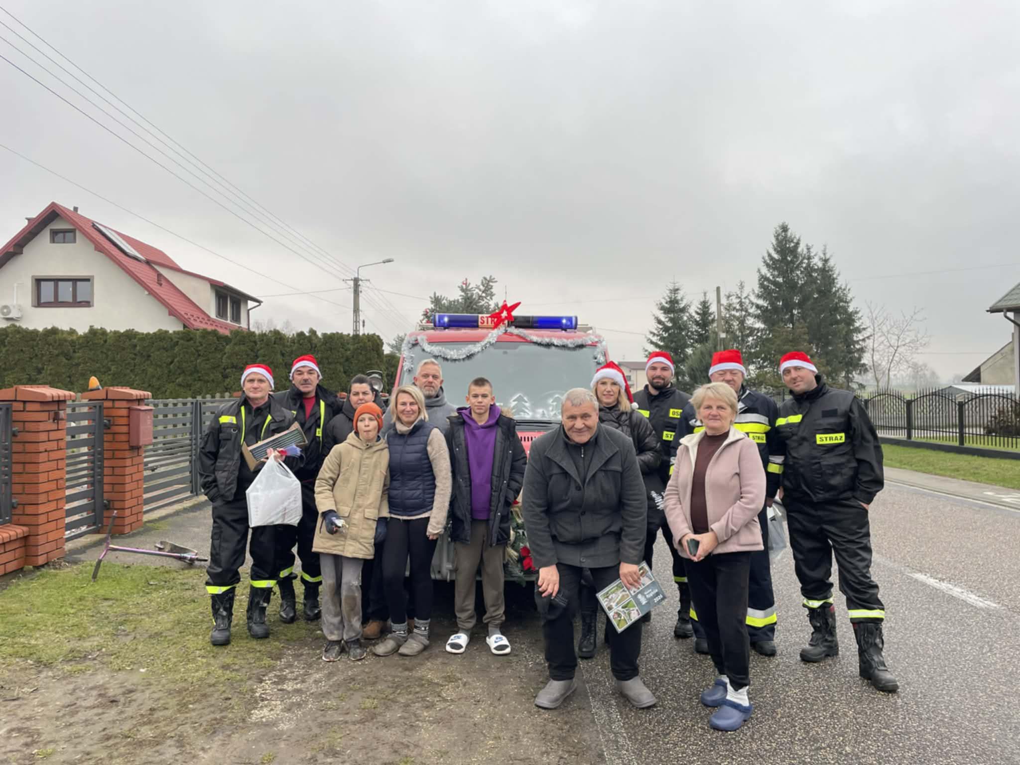 Strażacy – Mikołaje odwiedzali zarówno najmłodszych, jak i dorosłych mieszkańców, wręczając słodycze oraz gminne kalendarze na 2026 rok jako świąteczny upominek. Na twarzach napotkanych osób widzieliśmy mnóstwo uśmiechów, a ciepłe reakcje mieszkańców były najlepszym dowodem na to, że takie inicjatywy są potrzebne i budują naszą lokalną wspólnotę.