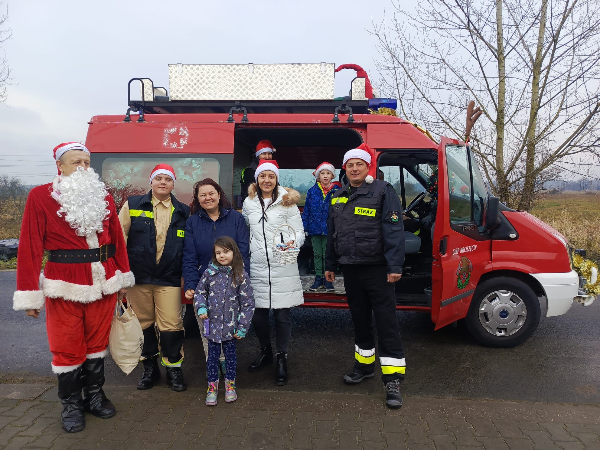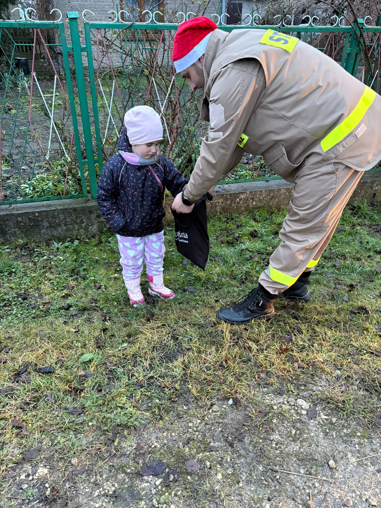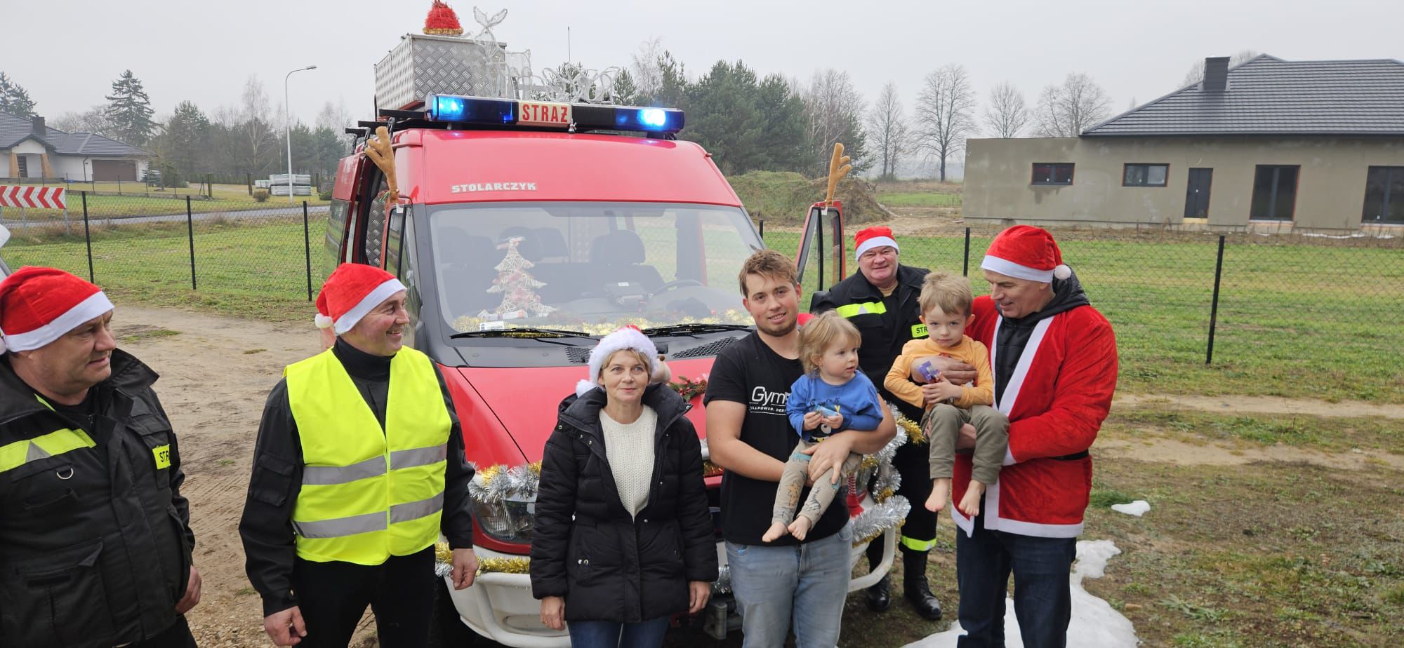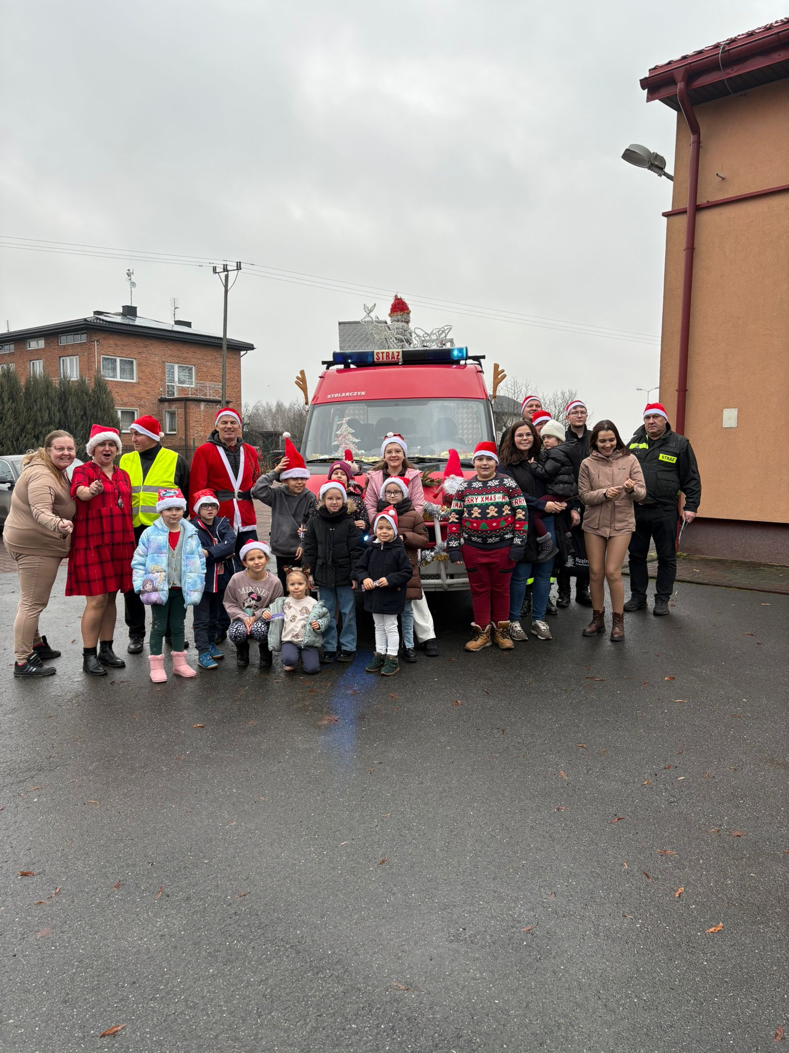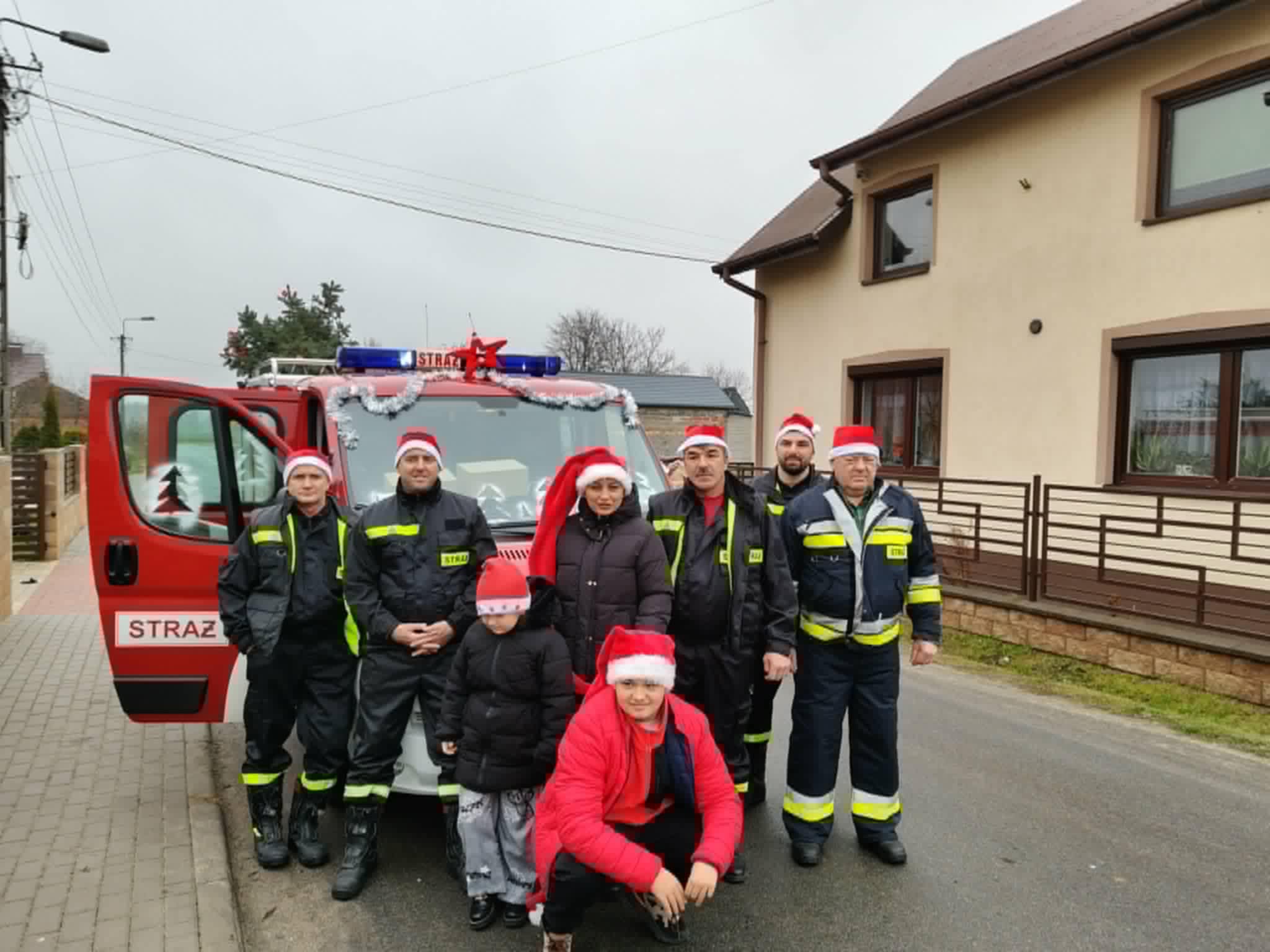 Strażacy – Mikołaje odwiedzali zarówno najmłodszych, jak i dorosłych mieszkańców, wręczając słodycze oraz gminne kalendarze na 2026 rok jako świąteczny upominek. Na twarzach napotkanych osób widzieliśmy mnóstwo uśmiechów, a ciepłe reakcje mieszkańców były najlepszym dowodem na to, że takie inicjatywy są potrzebne i budują naszą lokalną wspólnotę.