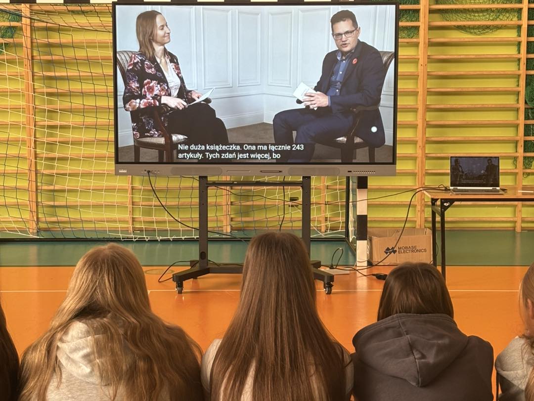 13 listopada 2025 r. uczniowie klasy: VIII a i VIII b Zespołu Szkolno – Przedszkolnego im. Jana Pawła II wzięli udział w obywatelskiej lekcji zdalnej, której gościem był profesor Paweł Wiliński, sędzia Sądu Najwyższego. Spotkanie odbyło się w ramach projektu „12 lekcji o Konstytucji”, realizowanego z myślą o popularyzowaniu wiedzy na temat praw obywatelskich i zasad funkcjonowania państwa demokratycznego.