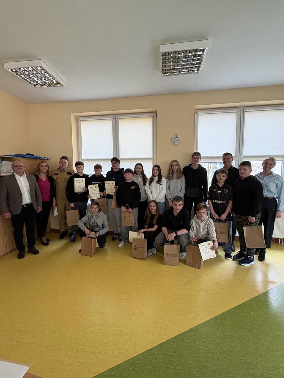 Serdecznie gratulujemy wszystkim uczestnikom oraz dziękujemy opiekunom za przygotowanie młodzieży do konkursu. Składamy również podziękowania dla strażaka Komendy Powiatowej Państwowej Straży Pożarnej – st. kpt. Tomaszowi Wolnowskiemu oraz Komendantowi Gminnemu – Piotrowi Krawczykowi za pomoc w organizacji i przeprowadzeniu konkursu.