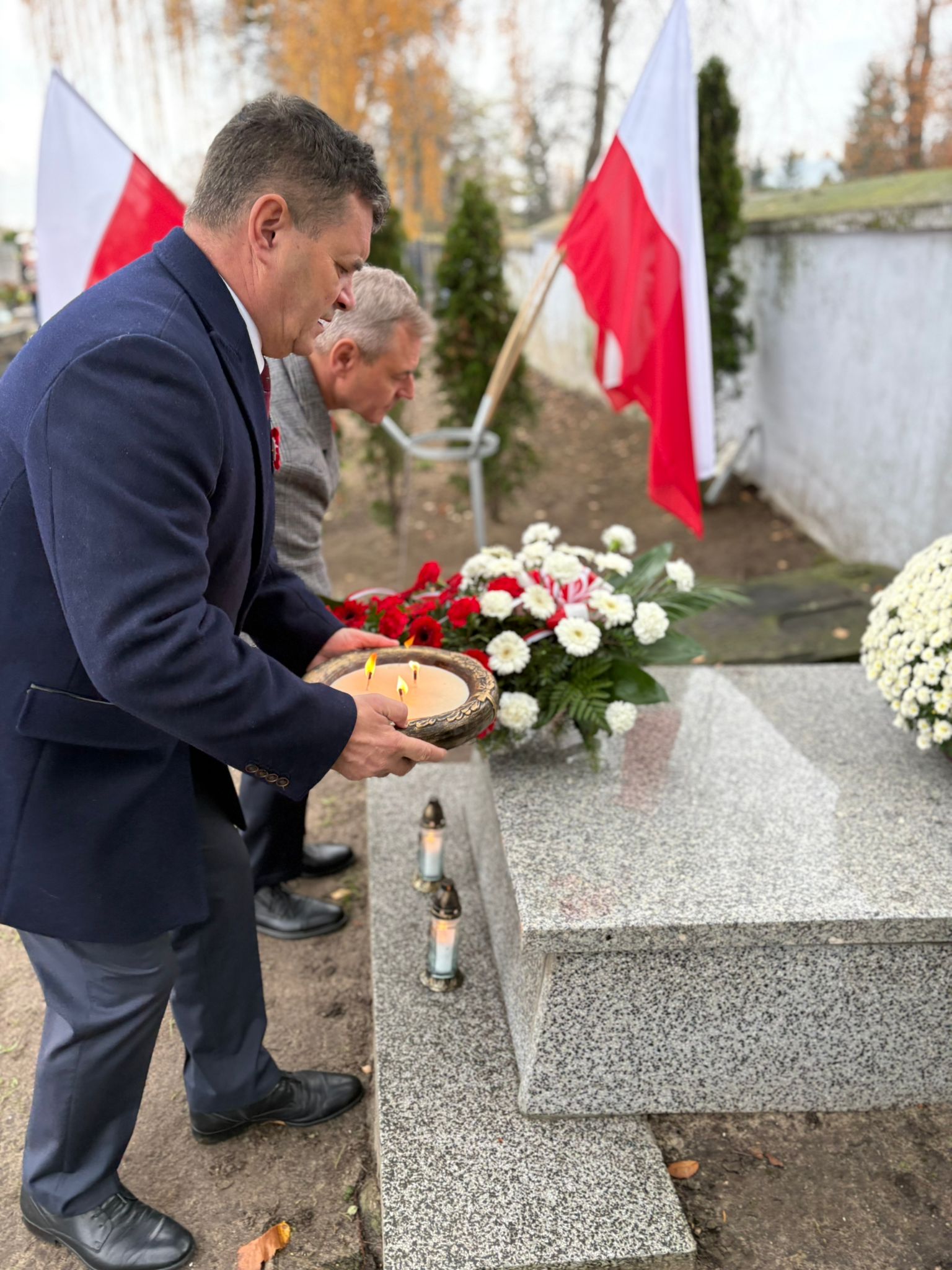 Po zakończeniu Mszy Świętej uczestnicy uroczystości wzięli udział w marszu na cmentarz parafialny, gdzie Wójt Tomasz Stolarczyk oraz Przewodniczący Rady Jarosław Popławski złożyli kwiaty i zapalili znicze na mogile Wojciecha Wysockiego – Oficera Wojsk Kościuszkowskich.
