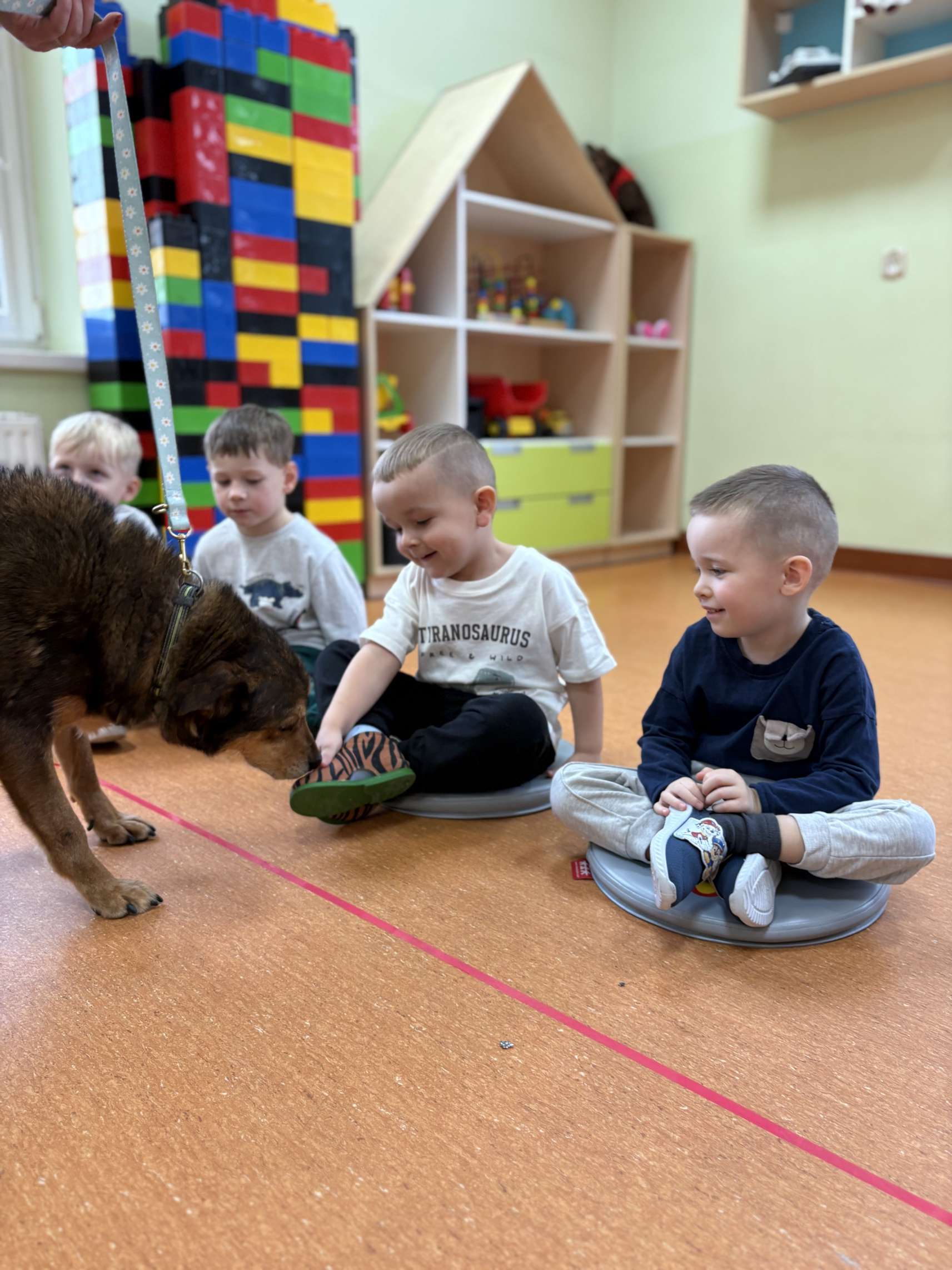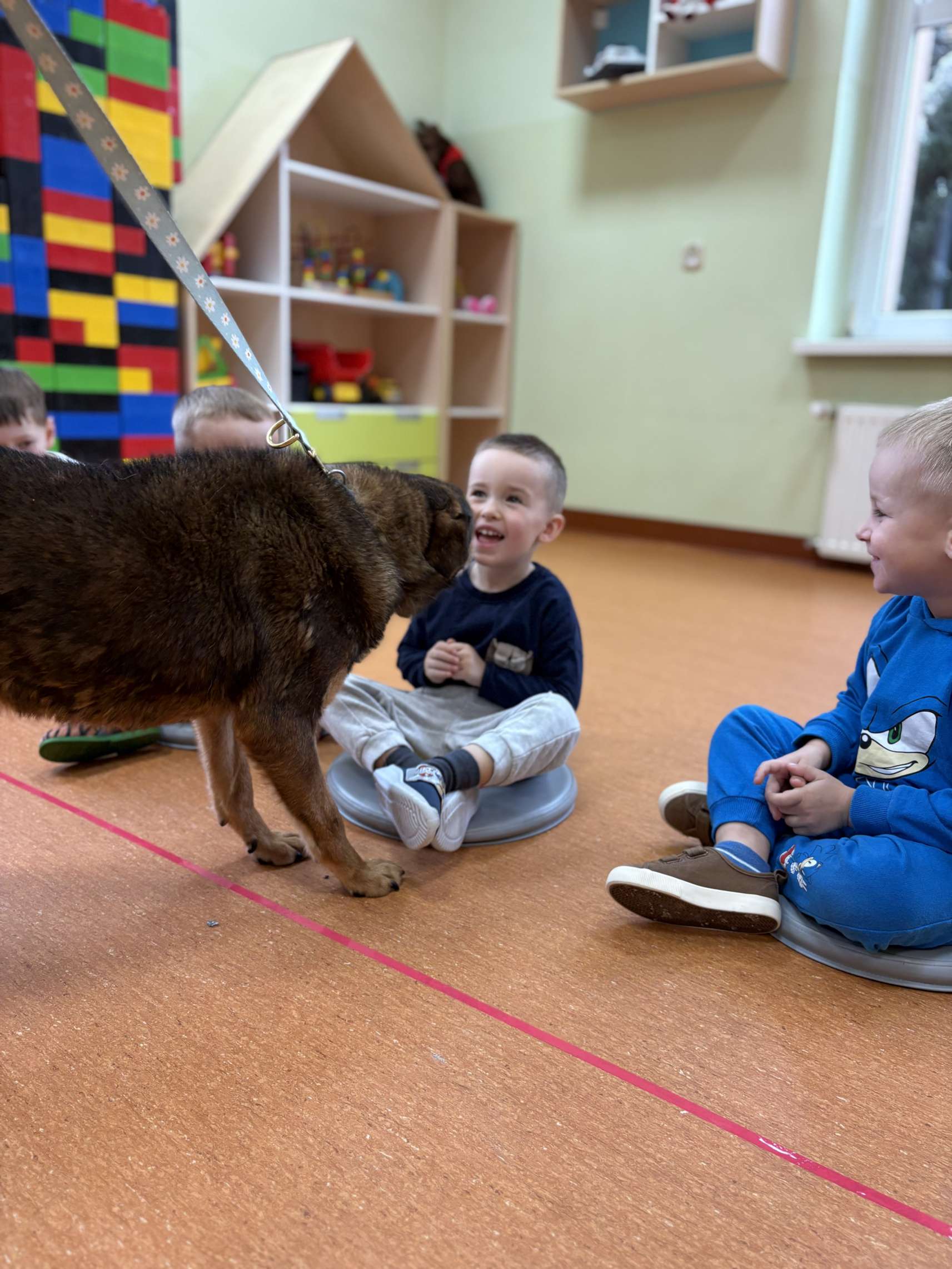 Dnia 26 listopada 2025 r. nasze przedszkole przy Zespole Szkolno-Przedszkolnym w Rząśni im. Jana Pawła II odwiedziło schronisko Funny Pets w Czartkach, współpracujące z Gmina Rząśnia. Do najmłodszych przyjechał pracownik schroniska wraz z pieskiem ,,Rząśniakiem”.