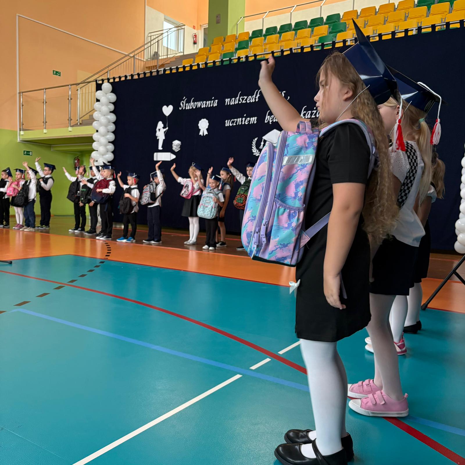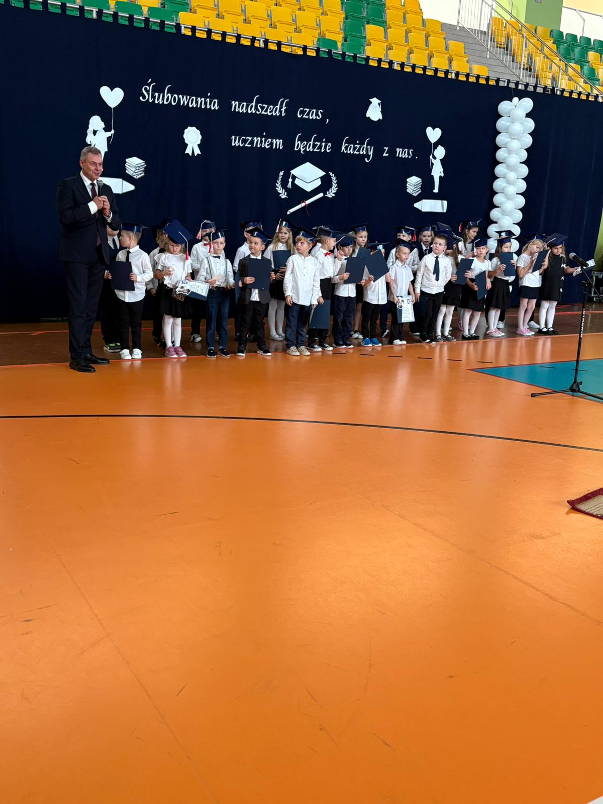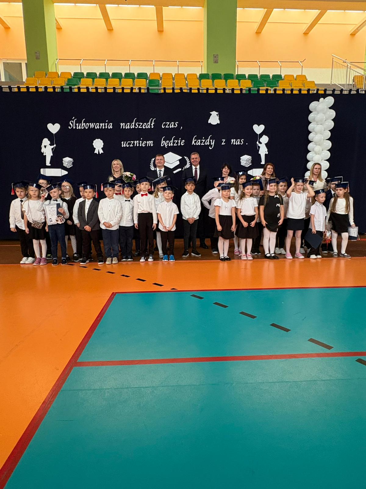 W przyszkolnej hali sportowej zgromadzili się uczniowie, nauczyciele, dyrekcja, rodzice oraz zaproszeni goście. W atmosferze pełnej powagi i wzruszeń pierwszoklasiści złożyli uroczyste ślubowanie na sztandar szkoły, obiecując być wzorowymi uczniami i godnymi obywatelami, a swoją postawą i osiągnięciami sprawiać radość bliskim i pedagogom. Uroczystość wzbogacił starannie przygotowany program artystyczny, który pozwolił zaprezentować talenty najmłodszych uczniów. Na zakończenie każdy z nich otrzymał drobny upominek od Wójta Tomasza Stolarczyka.