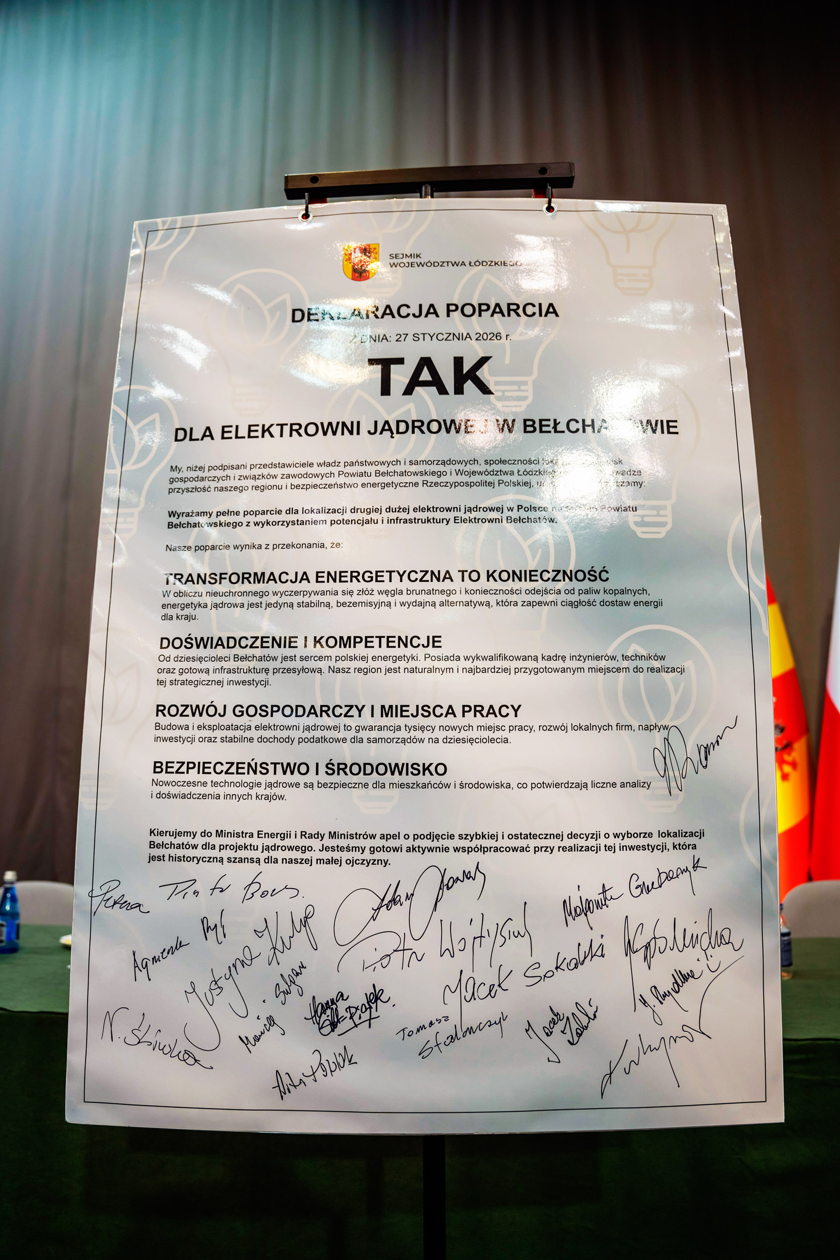 Wyrażamy pełne poparcie dla lokalizacji drugiej dużej elektrowni jądrowej w Polsce na terenie Powiatu Bełchatowskiego z wykorzystaniem potencjału i infrastruktury Elektrowni Bełchatów.