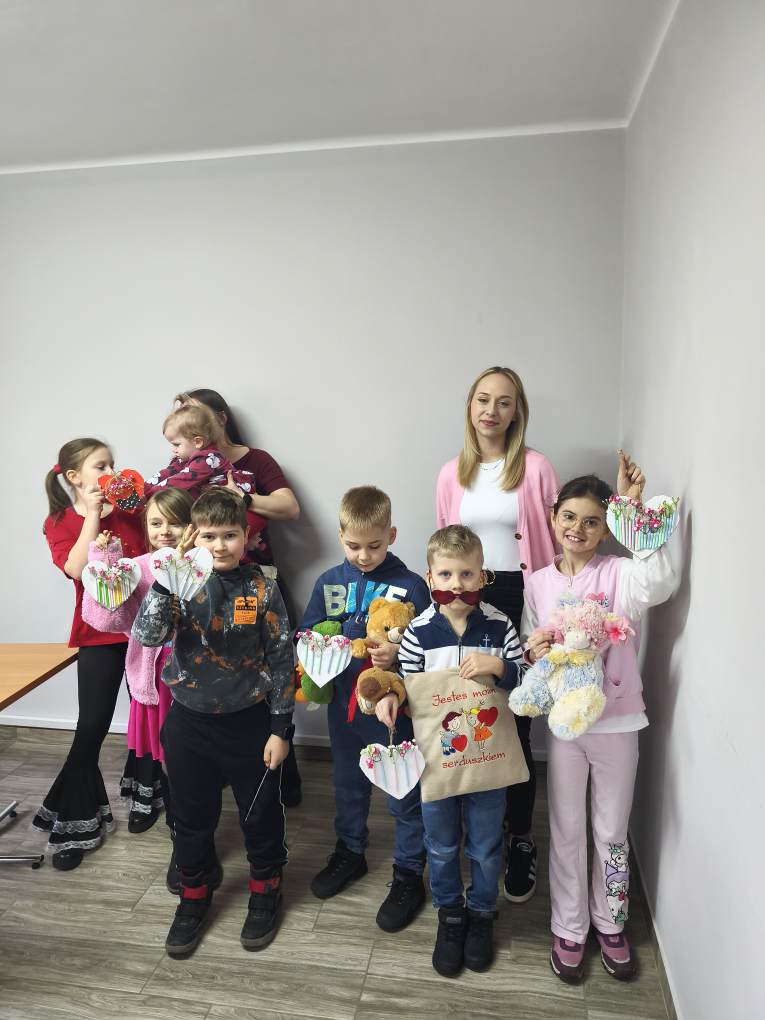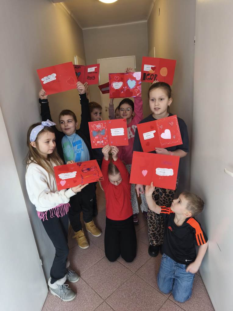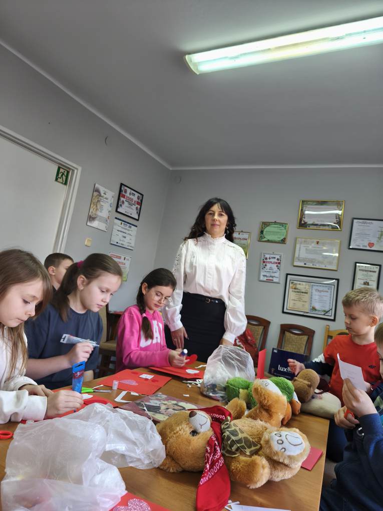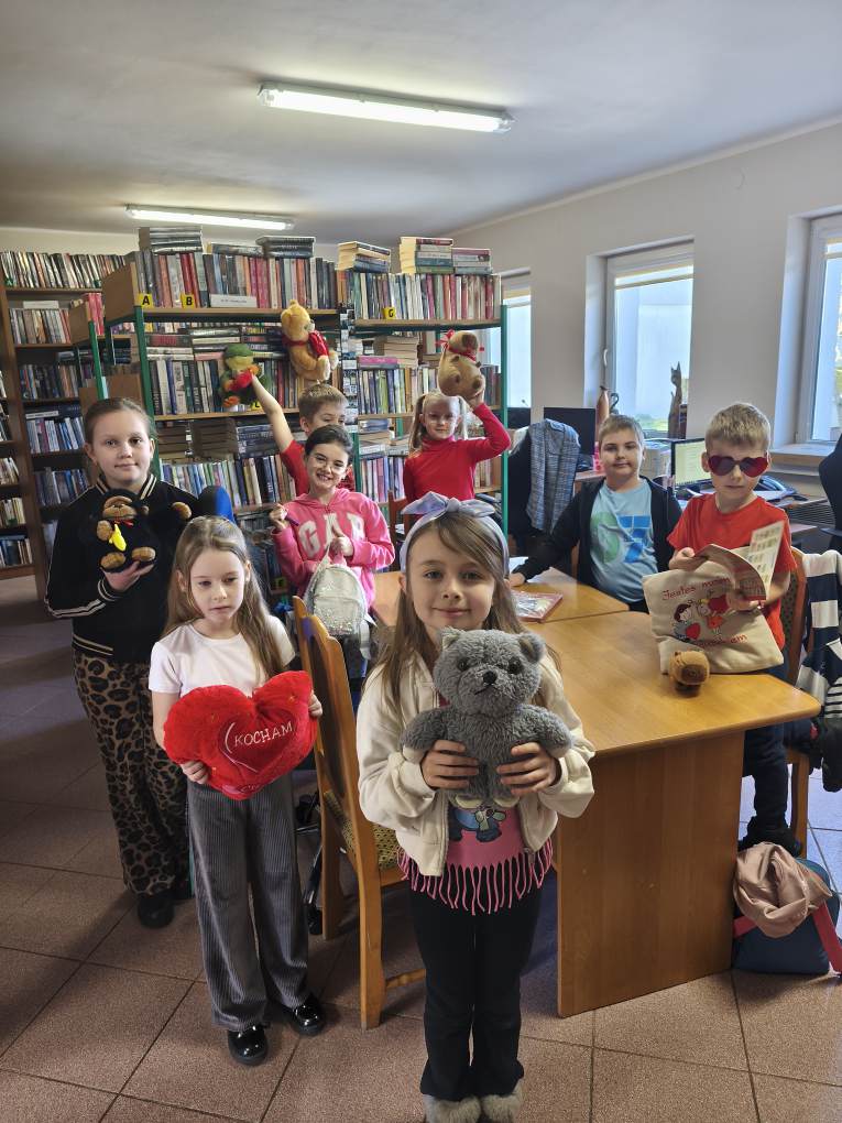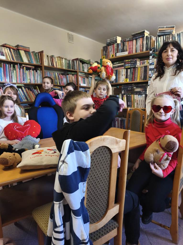 Czytamy książki w czerwonych okładkach: „Zawiłości miłości”, „Jadzia Pętelka mówi czułe słówka”, „Franklin i walentynki”. Wyklejamy walentynkowe zaproszenia i upominki. Na naszych spotkaniach nie zabrakło też zagadek, gier i zabawach ruchowych oraz quizów. Dużym zainteresowaniem cieszyły się zabawy z balonami, gra w kolory, poszukiwanie drugiej połówki serca, przygotowanie aromatycznej herbatki, zimne ognie i serduszkowe słodkości.