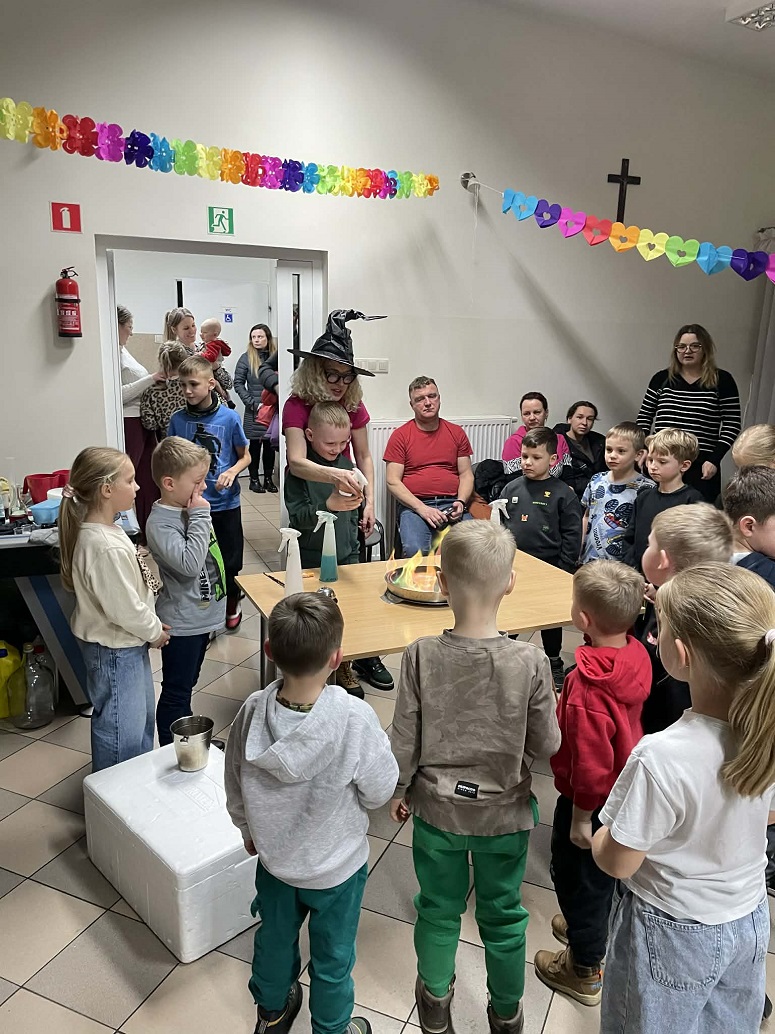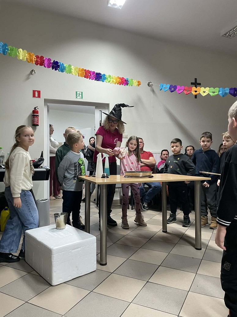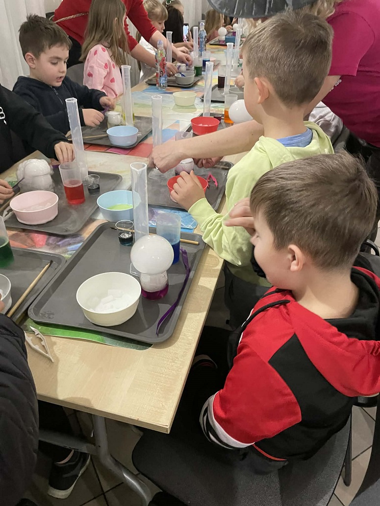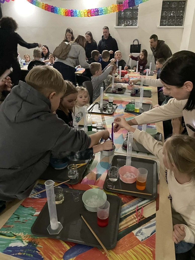 Wszyscy aktywnie uczestniczyli w zajęciach, zadawali pytania i z dużym entuzjazmem odkrywali tajniki nauki. To był wyjątkowy, pełen magii, wieczór. W warsztatach uczestniczyło 46 dzieci – dziękujemy za bardzo liczny udział