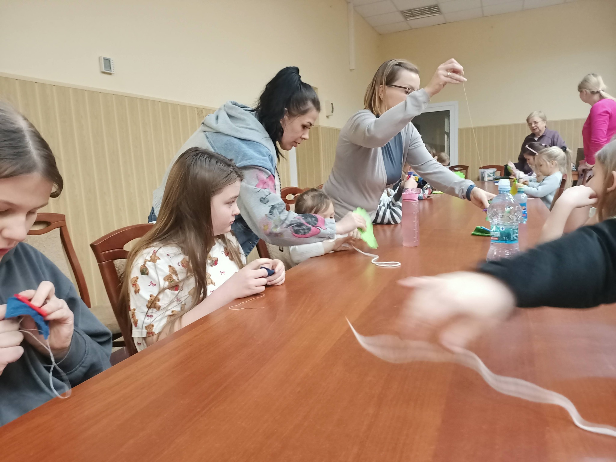 Z Krawcową Haliną i nauczycielką Karoliną nie było mowy o nudzie! Szliśmy, przeplataliśmy, wypychaliśmy i oczywiście wysłuchaliśmy fragmentów książki czytanych przez bibliotekarkę.