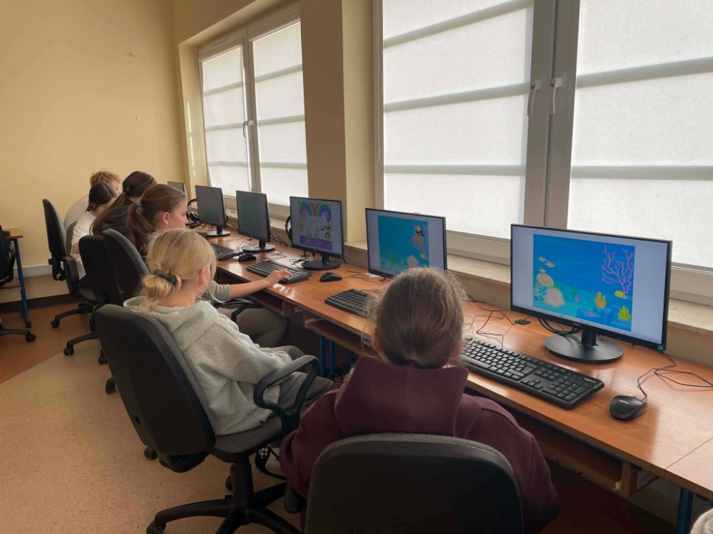,,Uczymy się poprzez zabawę”- pod takim hasłem uczniowie tworzyli kolejne prace na zajęciach z ,,Tajników programowania”. Realizując zadania w ramach projektu „Szkoła Podstawowa im. Marcina Bielskiego w Białej stawia na nowoczesną edukację”. Korzystając z nowoczesnej pracowni komputerowej i programu Scratch uczniowie projektowali piękny świat rafy koralowej oraz ciekawy i wciąż nieodgadniony świat kosmosu. Na ekranach monitorów ożywił się podwodny ekosystem koralowców, ryb, krabów, żółwi i ośmiornic. W kosmosie poruszały się bezwładnie ciała kosmonautów oraz statków kosmicznych.