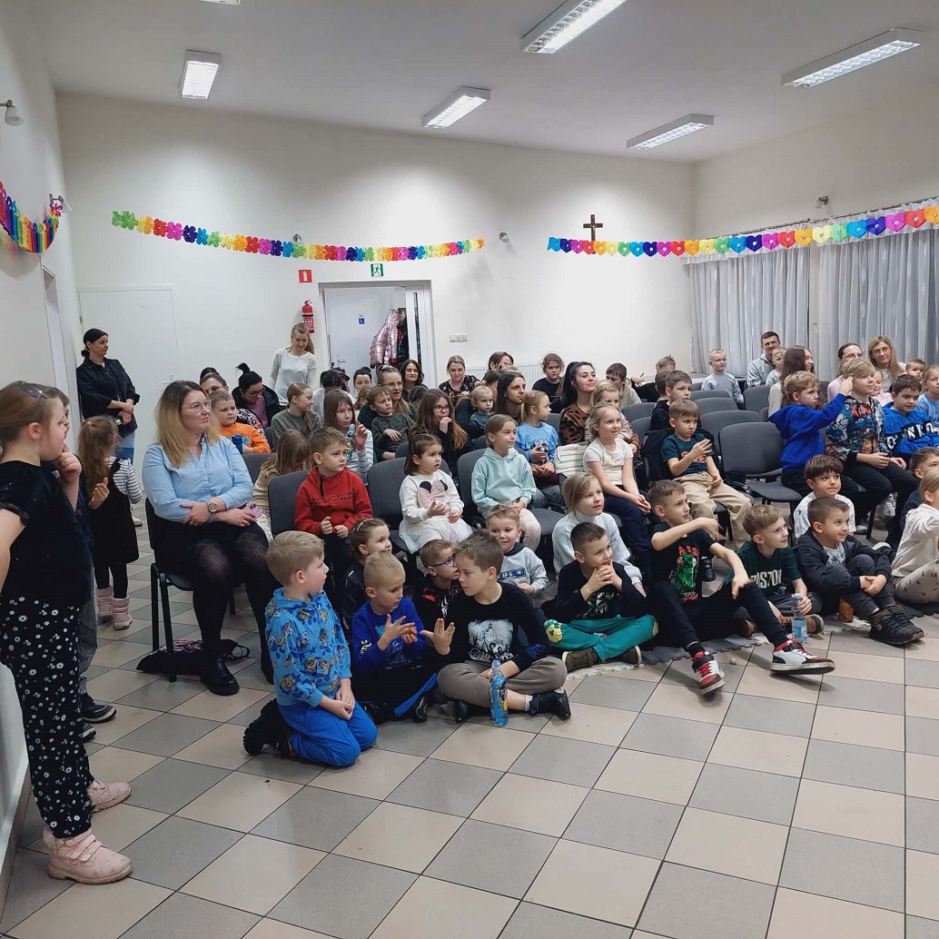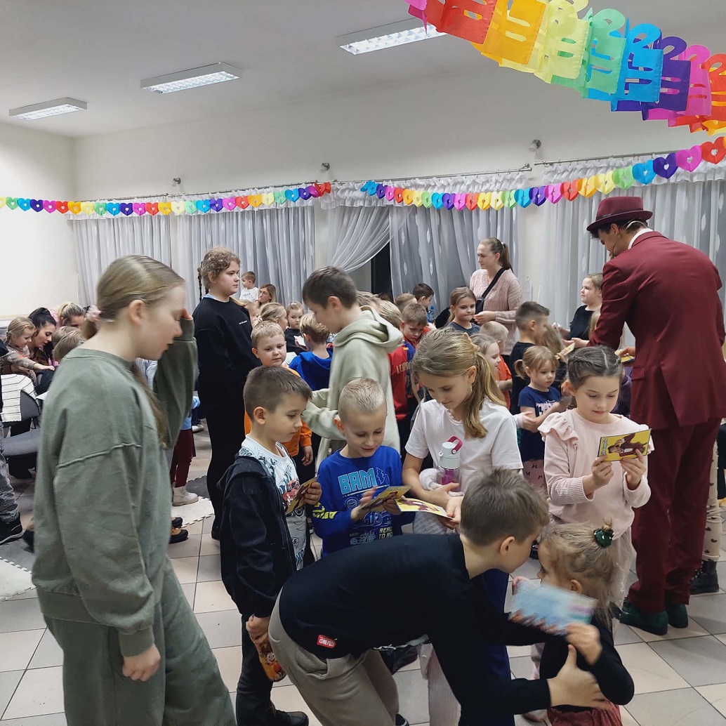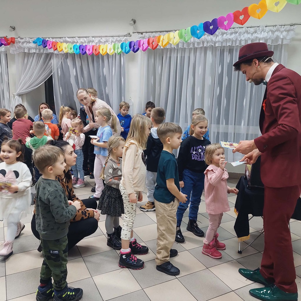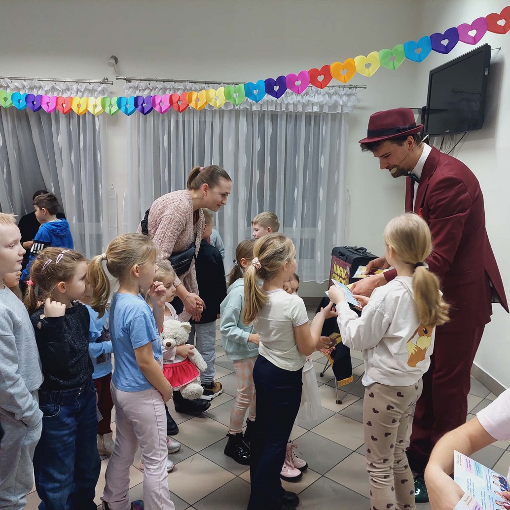Uczestnicy mieli okazję nie tylko obserwować sztuczki z bliska, ale również aktywnie w nich uczestniczyć co wywołało wiele radości i spontanicznych reakcji. Magik Gapcio oczarował publiczność poczuciem humoru, energią oraz doskonałym kontaktem z widzami. Sala wypełniła się śmiechem, oklaskami i okrzykami zachwytu, a atmosfera była prawdziwie magiczna.